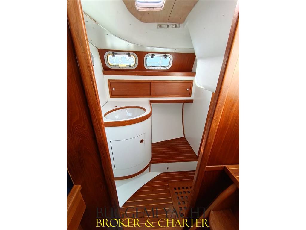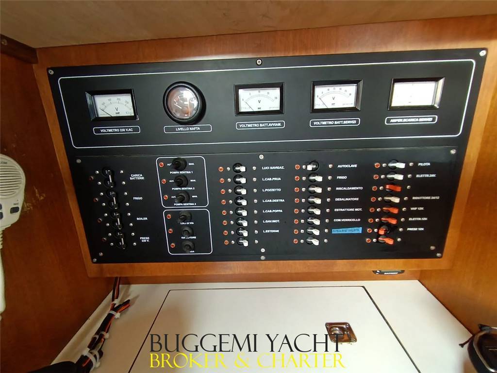 Abitabilità Superiore: Ampio pozzetto centrale (misure da 53 piedi) e 3 cabine (armatoriale a poppa con accesso separato e bagno). Interni tutti nuovi in pregiato Teak.