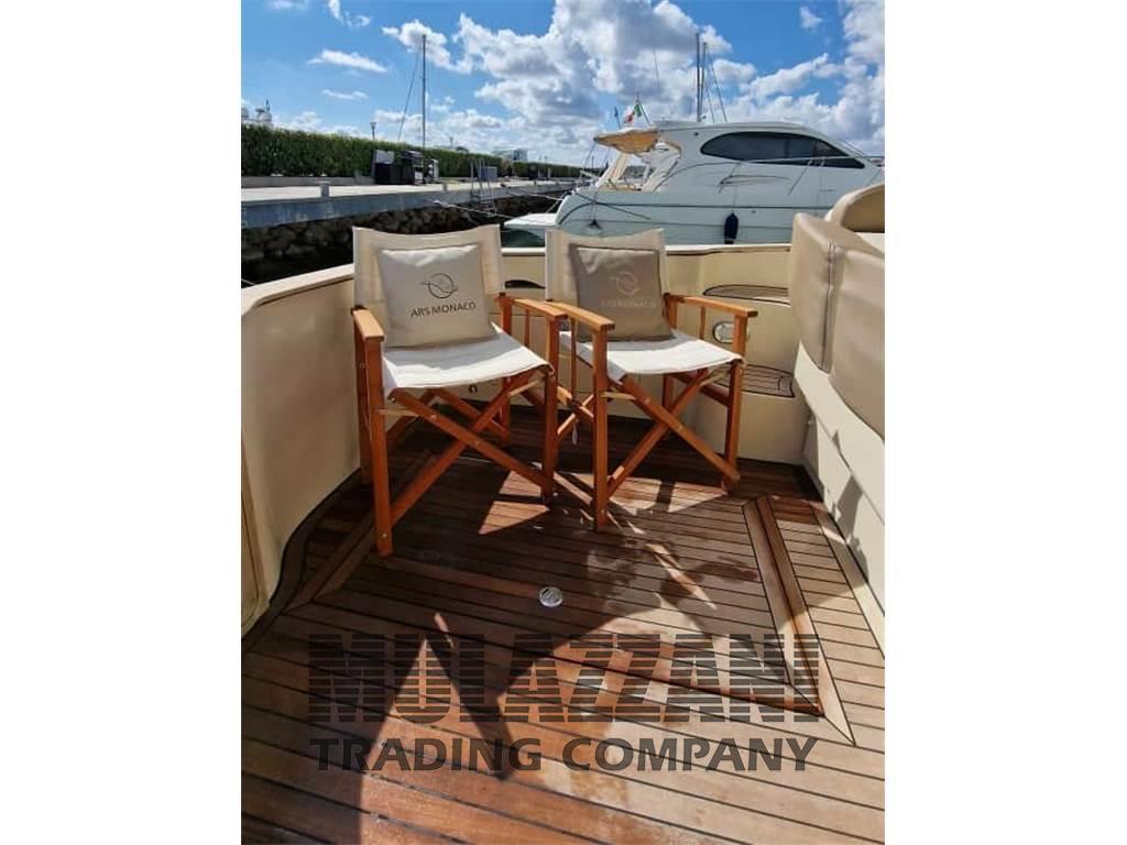 Acqua Calda, Altoparlanti, Aria condizionata (in tutti gli ambienti), Barometro, Boiler (elettrico), Cappottina, Cassaforte, Cassetta di pronto soccorso, Cucina, Cuscineria completa, Cuscineria di poppa, Cuscineria Pozzetto, Dotazioni di sicurezza oltre 50 miglia, Frigorifero esterno, Frigorifero interno, Giubbetti di salvataggio, Indicatore del serbatoio del carburante, Indicatore del Serbatoio dell’Acqua, Microonde, Pavimento interno in legno, Piastra elettrica (cucina interna), Piastra in vetroceramica (cucina esterna), Prese interne 12v, Prese interne 220v, Salvagente anulare con cima munita di boetta luminosa, Stereo (con bluetooth), 2 WC marino elettrico, Zattera di salvataggio (in corso di validita), Sincronizzatore motori