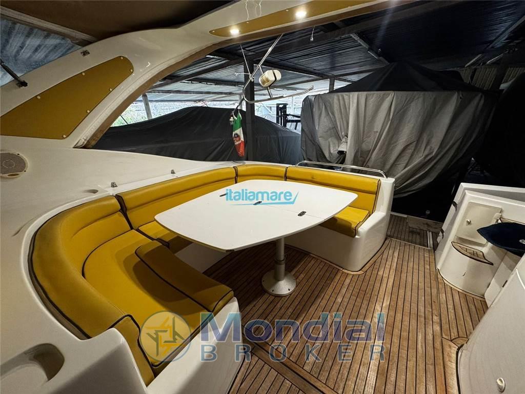L'Innovazioni e Progetti Mira 43 è un iconico open italiano con un profilo filante e un pozzetto estremamente spazioso, vero cuore pulsante della barca, attrezzato con un grande divano a U, tavolo trasformabile in prendisole e un mobile bar esterno che rende la vita all'aperto fluida e conviviale.