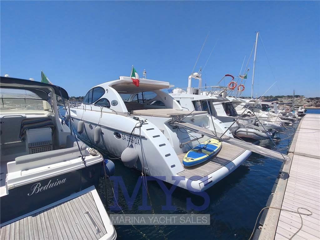 Verniciatura totale scafo e coperta in gelcoat, teak completo anche sui camminamenti laterali, nuova plancia di comando, tappezzerie nuove, interni wrappati e mobile cucina pozzetto su misura con celle frigorifere in acciaio.