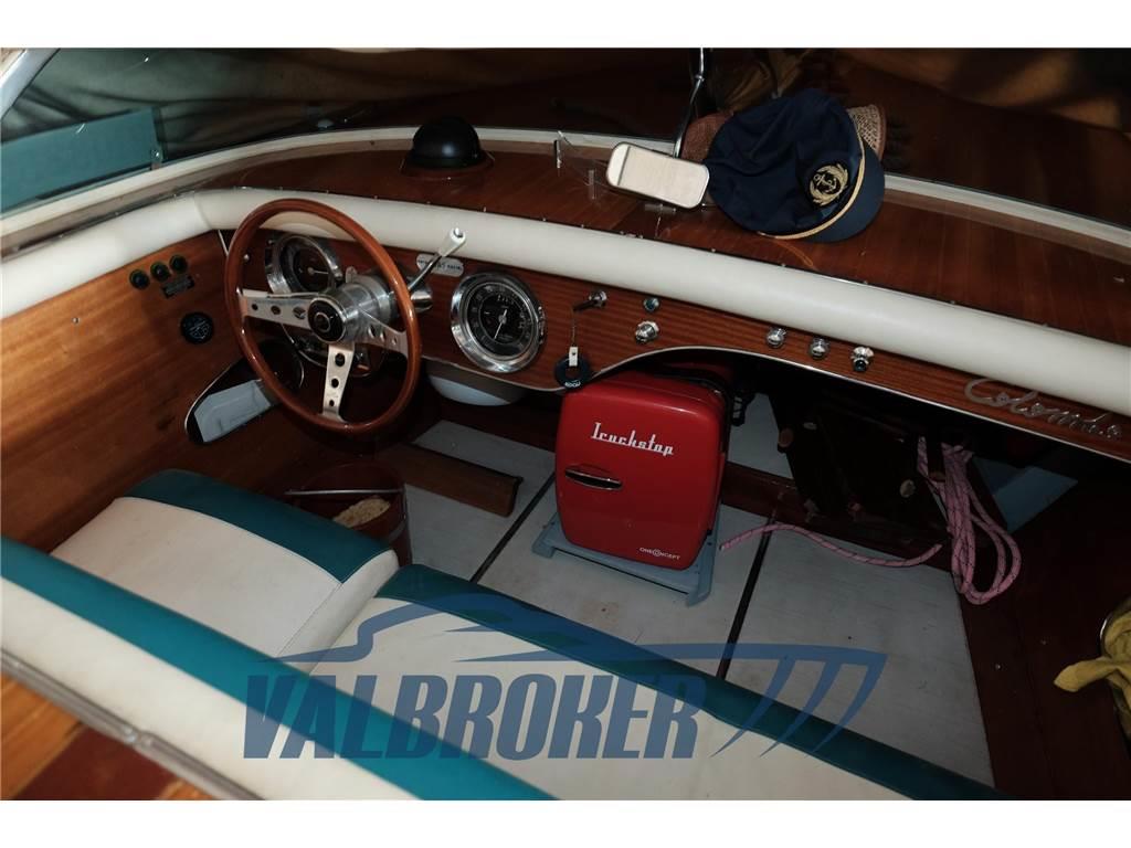 Colombo in mogano visibile sul Lago Maggiore. Barca d'epoca per appassionati ed intenditori. 2016: rifatti fondi e murate. Sempre stata fuori dall'acqua se non per brevi navigazioni.