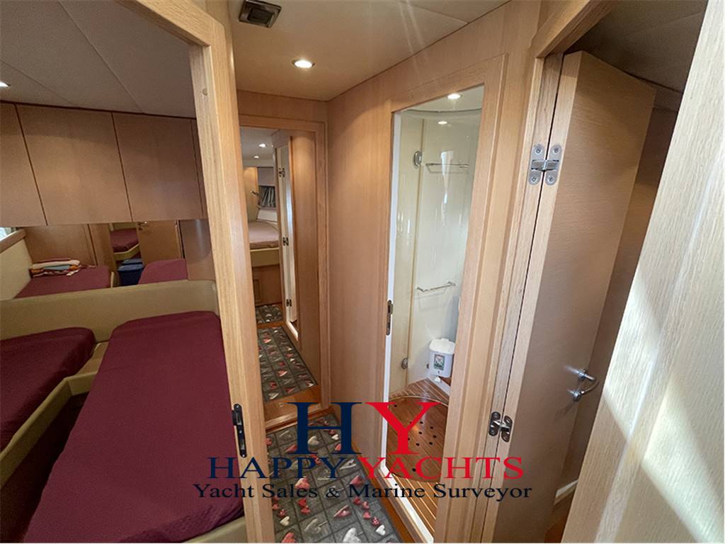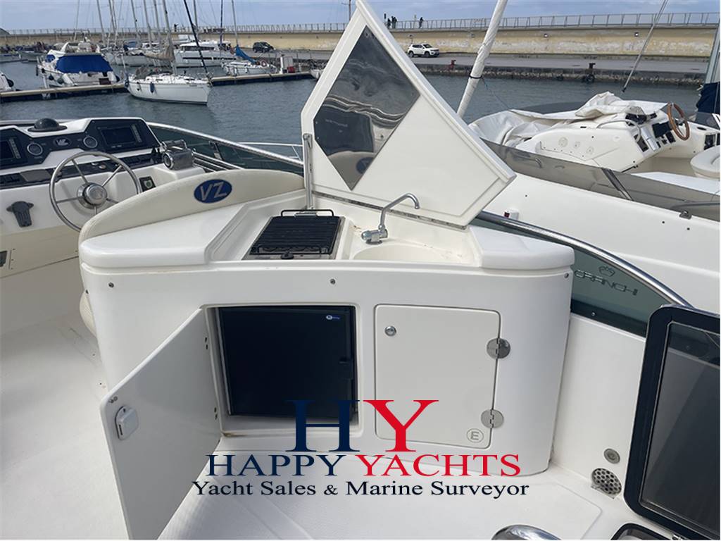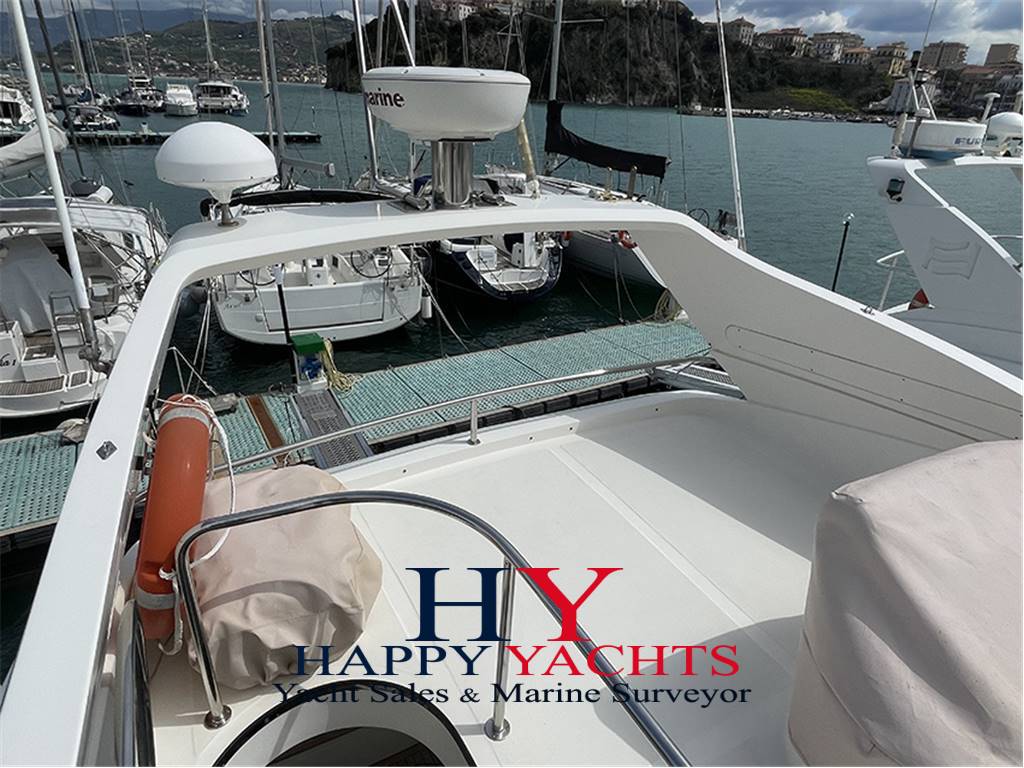 PASSERELLA IDRAULICA - VERRICELLO ELETTRICO - WINCH - ESTRATTORI SALA MACCHINE - IMPIANTO ANTINCENDIO - BOILER - GRUPPO ELETTROGENO ONAN 11 KW - ARIA CONDIZINATA - COPERTA IN TEAK - CUSCINERIE ESTERNE COMPLETE - TENDALINO FLY - CHIUSURA CAMPER POZZETTO - COPERTURE VETRI E MOBILI FLY - MOBILE CUCINA FLY CON FRIGORIFERO, LAVELLO E BARBECUE - CUCINA INTERNA CON FRIGORIFERO, LAVELLO E PIANO COTTURA - TAVOLO POZZETTO E TAVOLO SUL FLY - FARO PIRATA -