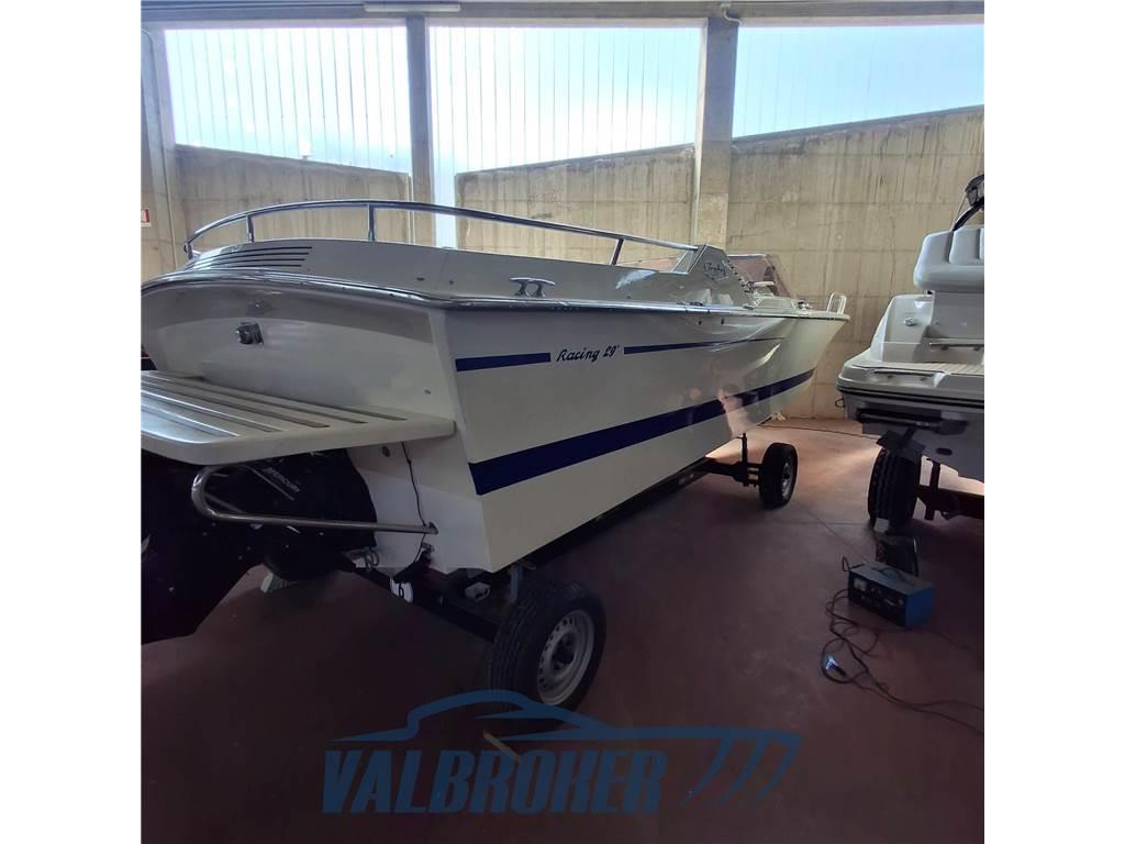 Colombo Racing 29 usato solo lago. Rimotorizzato nel 1998 con 2x Mercruiser 5.7 V8 con solo 350 ore. Refittato nel 2025. Uno dei modelli più conosciuti con ampio prendisole a poppa.