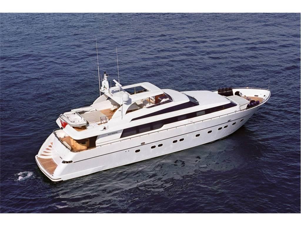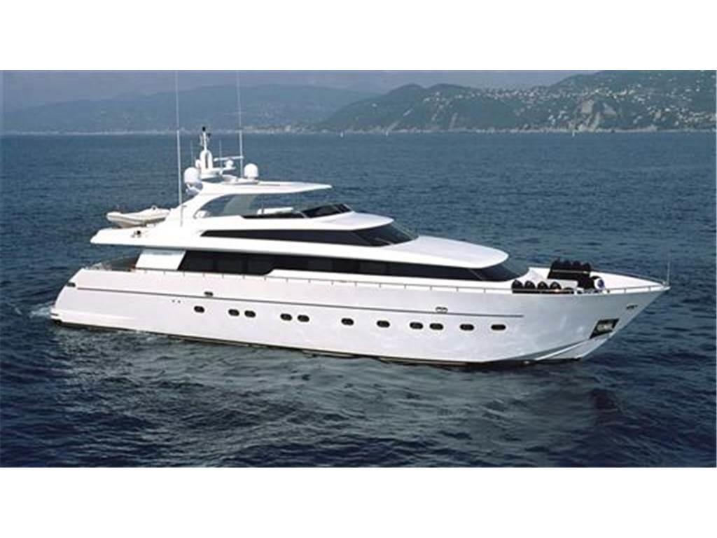 Allarme sentina, Ancora, Autogonfiabile, Camminamenti laterali in teak, Doccia esterna, Elica di poppa - stern thruster, Elica di prua - bow thruster, Faro orientabile, Flap idraulici, Gruette, Impianto antincendio, Lavaggio catena, Passerella, Piattaforma, Pompa di sentina automatica, Pompa di sentina elettrica, Porta ingresso, Porta laterale, Pozzetto Teak, Presa 220V banchina, Presa acqua banchina, Raddrizzatore, Salpa Ancore Elettrico, Scaletta da bagno, Stabilizzatori, Tavolo pozzetto, Tromba, Winch, Winch tonneggio di prua.