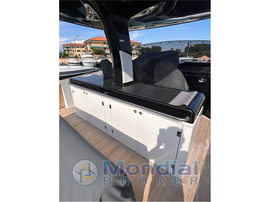 La zona di poppa è dotata di un generoso prendisole, progettato per offrire massimo comfort e praticità, ideale per rilassarsi e godere della navigazione in totale comodità.