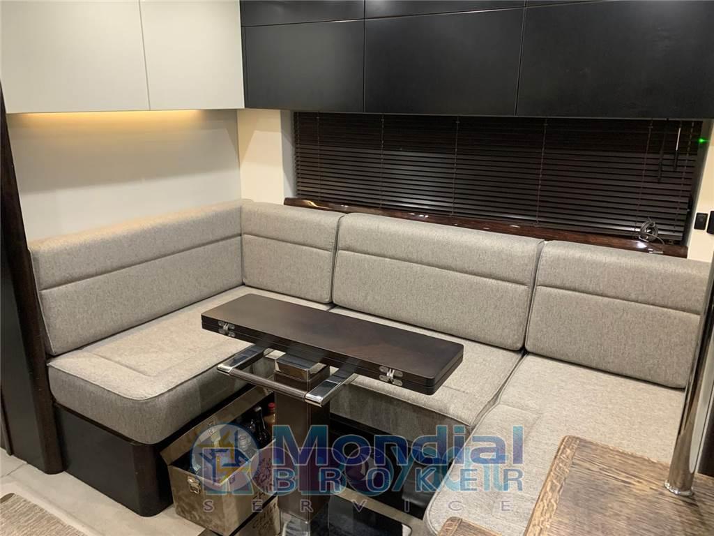 Aria condizionata (3 gruppi), BBQ/ Grill (esterno), Boiler, Cappottina (soft top 2012), Clima reversibile, Copripozzetto, Cuscineria di poppa, Cuscineria di prua, Cuscineria Pozzetto, Dotazioni di sicurezza entro 6 miglia, Forno (elettrico), Frigorifero esterno, Frigorifero interno (230 lt), Impianto acque nere, Impianto TV, Lavastoviglie, Oscuranti, Pavimento interno in legno, Piastra elettrica (induzione nuova), Serbatoio Acque Nere, Stereo (HIFI Fusion 1400 W con amp. e subwoofer con 8 casse), TV