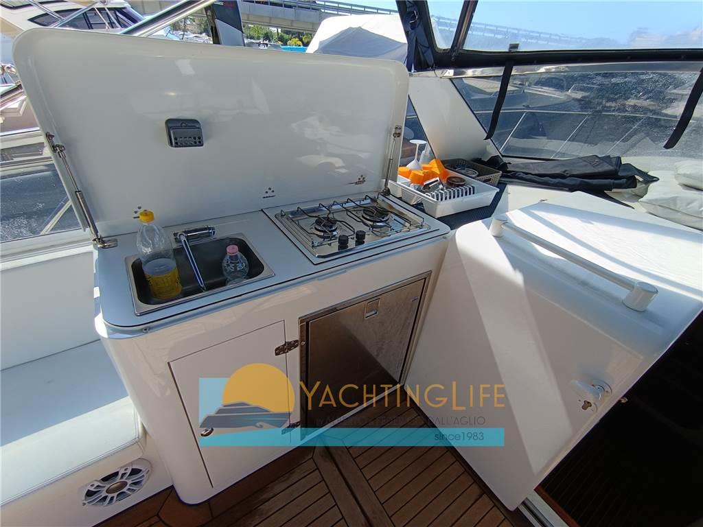 Altoparlanti, Boiler, Cappottina, Congelatore, Cucina (2 fuochi a gas esterna), Cuscineria completa, Dotazioni di sicurezza entro 12 miglia, Frigorifero esterno, Frigorifero interno, Pavimento interno in legno, Prese interne 12v, Prese interne 220v, Stereo (Fusion 2500watt), WC marino elettrico