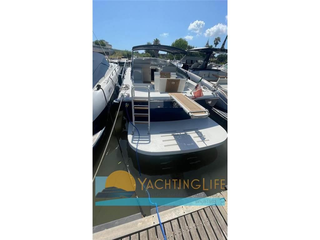 Imbarcazione completamente refittata dal 2022 ad oggi - Motori revisionati a zero ore nel 2022 da Caterpillar ufficiale - Impianti ed interni completamente smontati e rifatti ex novo - Tappezzerie tutte completamente nuove - Teak nuovo - Sala motori rifatta completamente - Cucina interna eliminata e messo frigo e congelatore molto grandi - Scafo wrapping in blu metallizzato - Tenda araba di poppa con pali in carbonio -