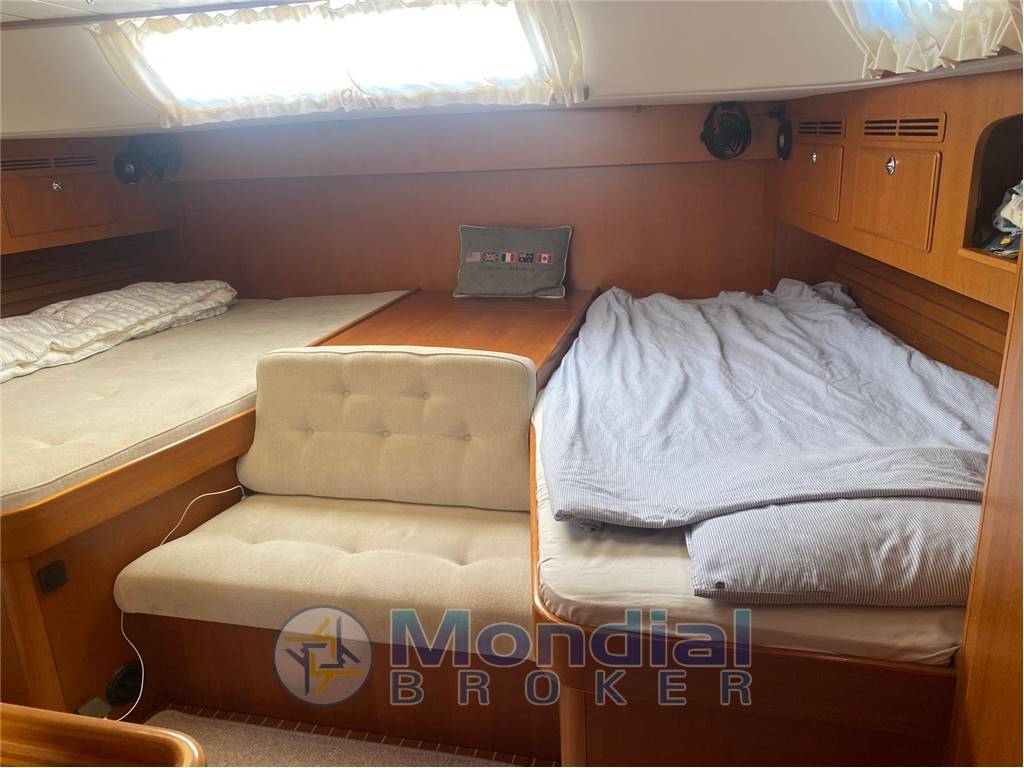 Cabina di poppa con letto matrimoniale a dritta e singolo a sinistra, Divano tra le cuccette abbassato di 5 cm e bagno con doccia separata; Cabina pruavia a dritta con letto a castello. WC a sinistra. Cabina a prua letti a V.