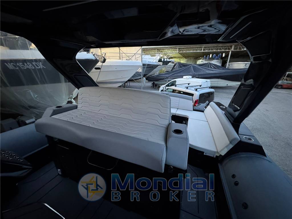 La possibilità di installare fino a tre motori fuoribordo soddisfa anche i diportisti più esigenti, offrendo una navigazione rilassante senza rinunciare alle emozioni dell’alta velocità. Il pozzetto, particolarmente spazioso, è studiato per massimizzare l’abitabilità: il tavolo elettroassistito a scomparsa può trasformarsi rapidamente in un ampio prendisole, adattandosi a ogni esigenza.