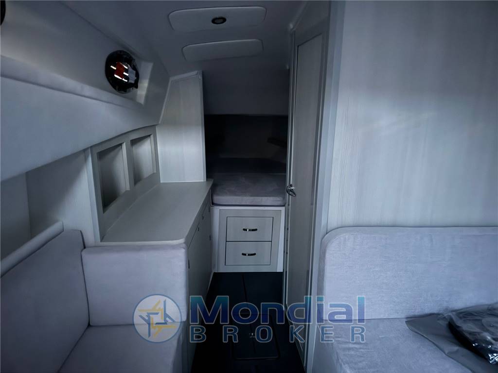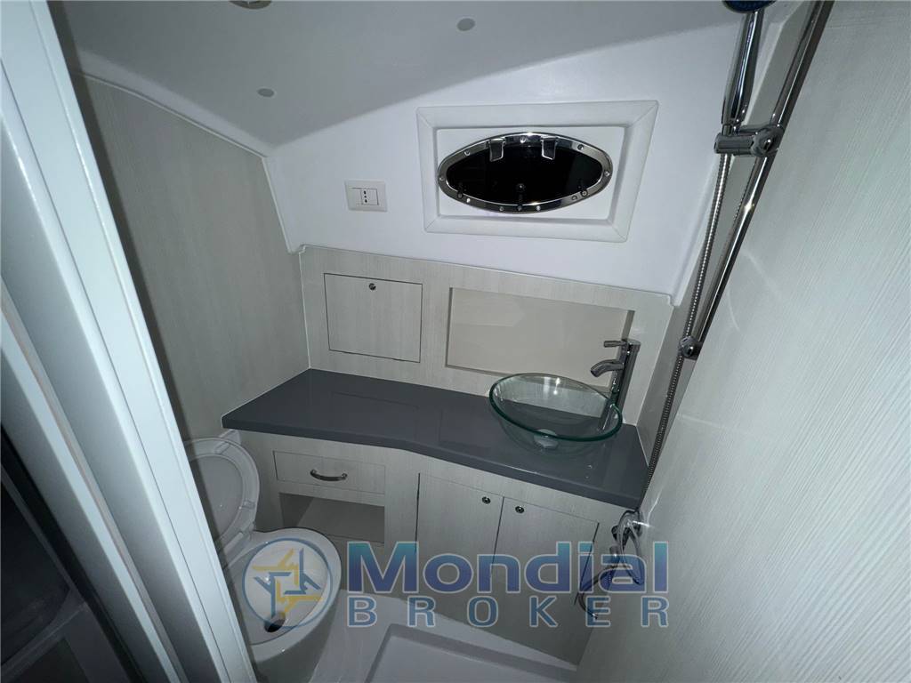 Gli interni sono progettati per garantire comfort anche nei pernottamenti: la cabina dispone di letto armatoriale a prua, divano e dinette trasformabile, permettendo di ospitare fino a quattro persone. Il bagno separato, completo di wc, doccia e lavabo, completa l’allestimento interno e consente di vivere il mare in modo completo e senza rinunce.