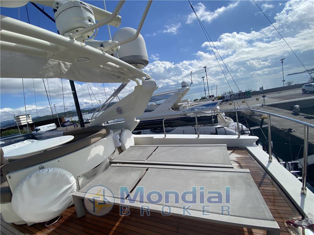 Plancetta idraulica, passerella telescopica idraulica, 2 verricelli prua, verricello poppa, ancora e catena ancora, terza stazione di controllo per ormeggio, teak nel pozzetto (da sostituire), scaletta bagno, teak flybridge (nuovo), tavolo pozzetto, doccetta pozzetto, cuscineria completa, bimini, coperture pozzetto.