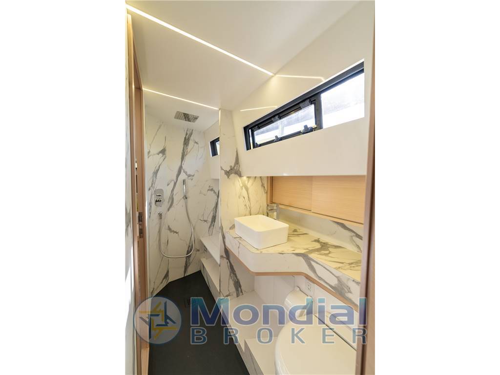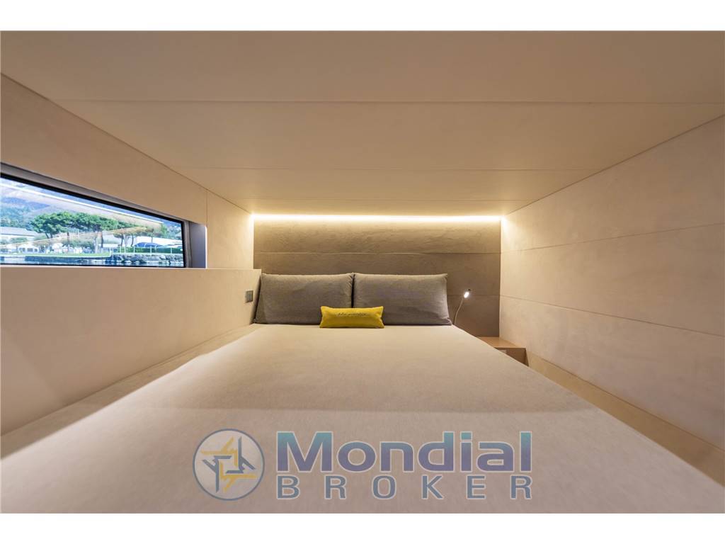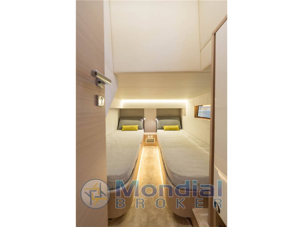 In entrambi gli allestimenti, bagno dell’armatore, cucina e dinette si distinguono per dimensioni generose. Le cabine degli ospiti, modulabili con letti singoli o matrimoniali, rivelano un’abitabilità superiore agli standard di categoria.