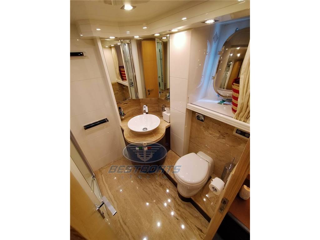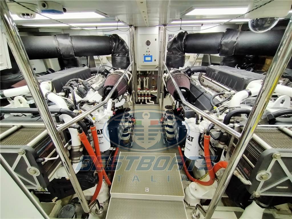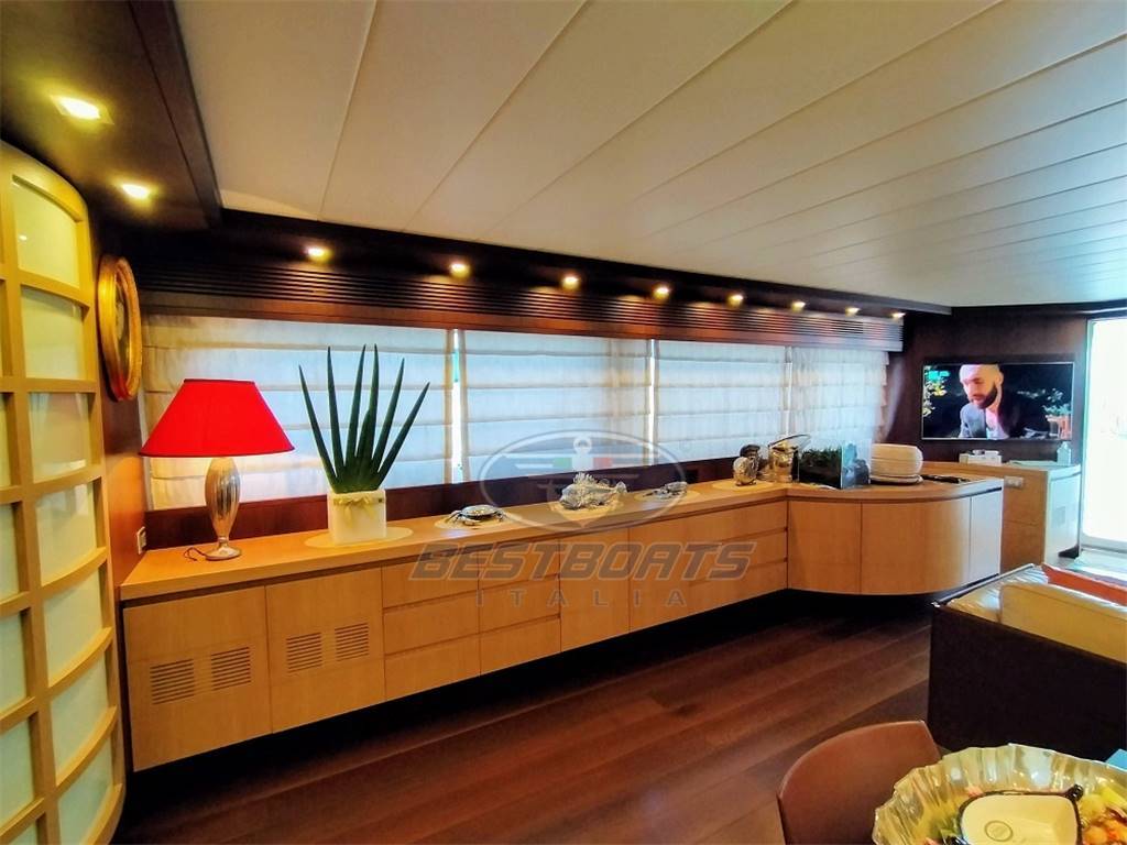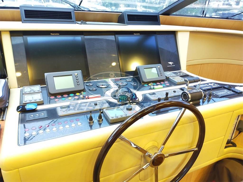 elica di prua elica di poppa idraulica stabilizzatore Mitsubishi zero Speed passerella idraulica a scomparsa aria condizionata "condaria" Top Climate con doppio ciclo in ogni ambiente più aggiunta di due gruppi supplementari di cui uno per condizionamento sala macchine più altra macchina per maggiorazione condizionamento salone, vasca Jacuzzi sul fly, doppio salpa ancora lofrans con tonneggio a prua, 2 winch di tonneggio Lofrans a poppa, joystick di manovra yacht controller, dissalatore idromar 360 l/h, cuscini prendisole esterni completi dolcetta su plancia di poppa tavolo sul fly con divano e quattro sedute mobile cucina sul fly con frigo a due cassetti ice maker, lavello e grill Wolf più frigo a cesta in pozzetto, tendalino copertura sole ad apertura elettrica in Pozzetto, impianto casse acque nere e grigie, cassaforte allarme antintrusione, doccetta su plancia di poppa, Ponte + fly + plancia di poppa hintec scala bagno idraulica