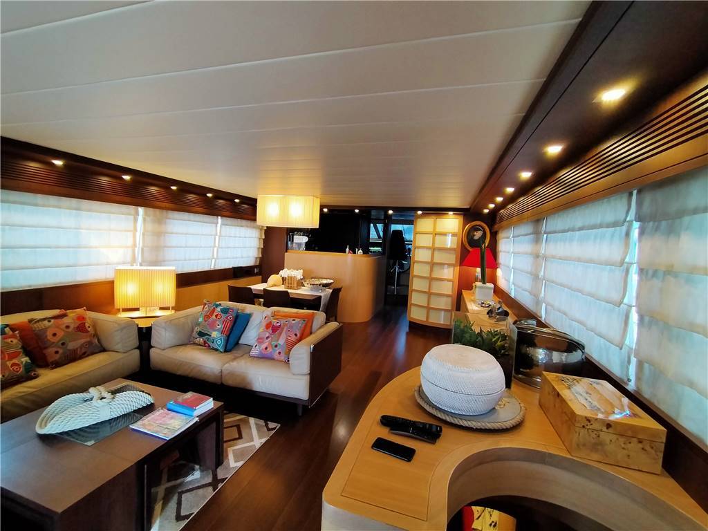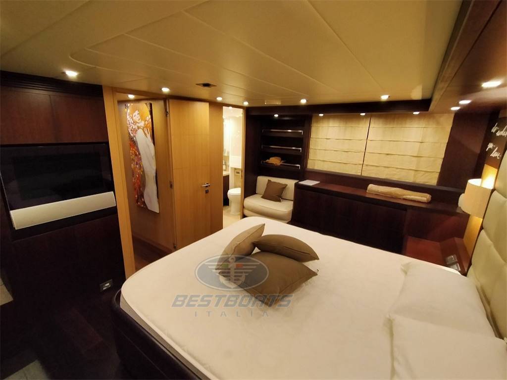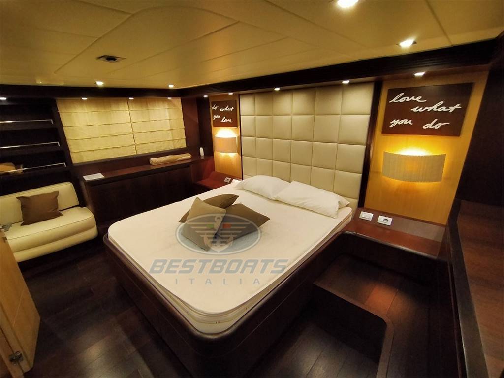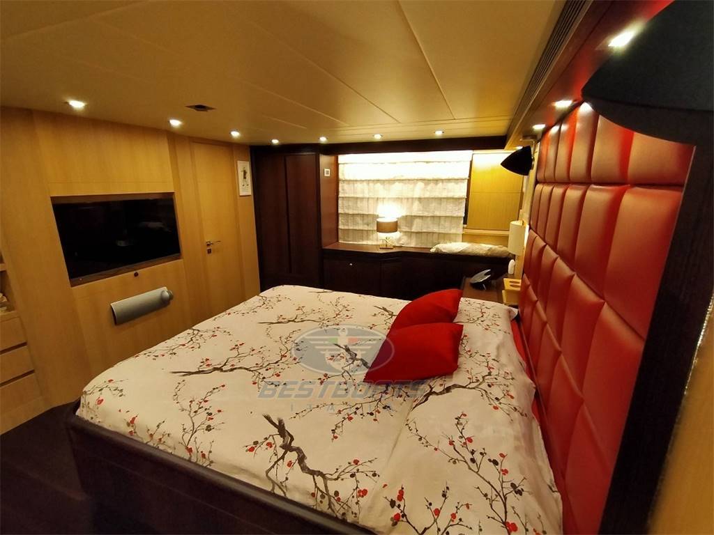 elica di prua elica di poppa idraulica stabilizzatore Mitsubishi zero Speed passerella idraulica a scomparsa aria condizionata "condaria" Top Climate con doppio ciclo in ogni ambiente più aggiunta di due gruppi supplementari di cui uno per condizionamento sala macchine più altra macchina per maggiorazione condizionamento salone, vasca Jacuzzi sul fly, doppio salpa ancora lofrans con tonneggio a prua, 2 winch di tonneggio Lofrans a poppa, joystick di manovra yacht controller, dissalatore idromar 360 l/h, cuscini prendisole esterni completi dolcetta su plancia di poppa tavolo sul fly con divano e quattro sedute mobile cucina sul fly con frigo a due cassetti ice maker, lavello e grill Wolf più frigo a cesta in pozzetto, tendalino copertura sole ad apertura elettrica in Pozzetto, impianto casse acque nere e grigie, cassaforte allarme antintrusione, doccetta su plancia di poppa, Ponte + fly + plancia di poppa hintec scala bagno idraulica