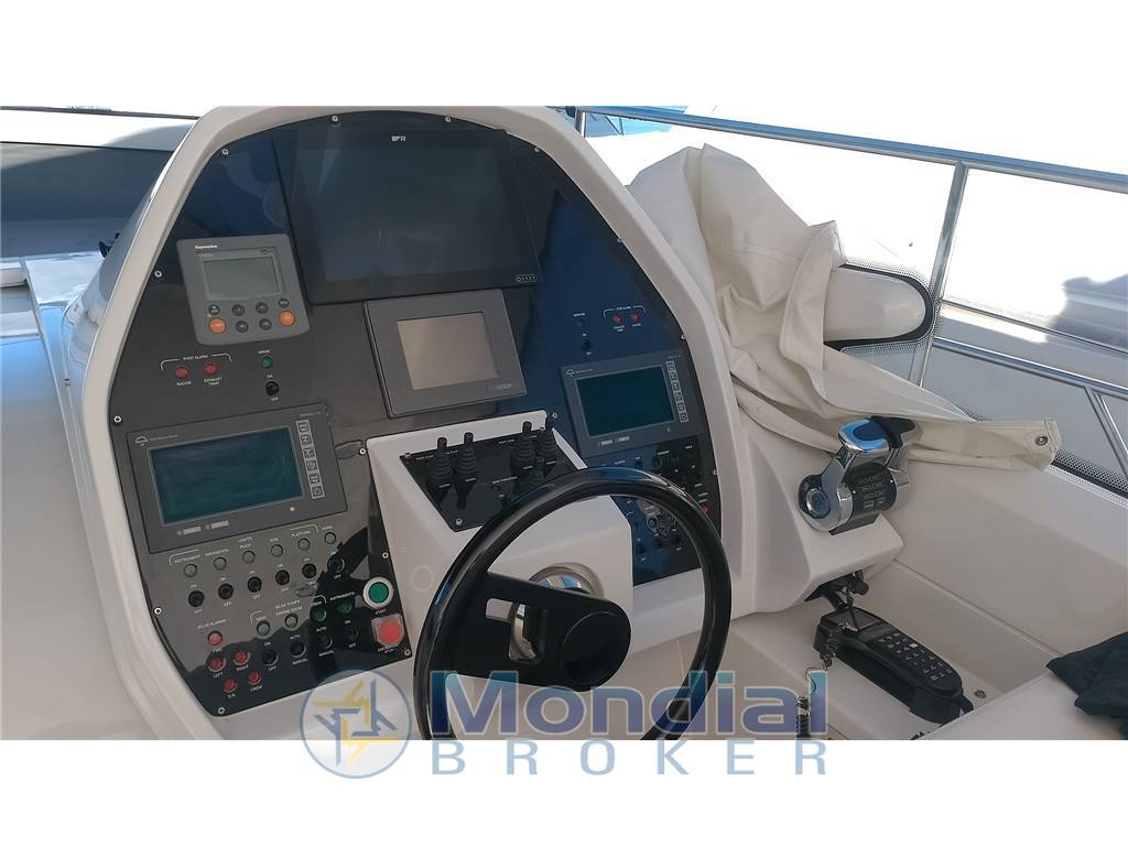Verricello elettrico, cuscineria esterna, hard top elettrico, tavolo pozzetto, pedana di poppa maxi e pozzetto in teak, passerella idraulica, elica di prua, mobile esterno, boiler, carica batterie, imp. tv, imp. stereo, ecosonda, vhf, gps, pilota automatico, freezer, vetroceramica, generatore aria condizionata.