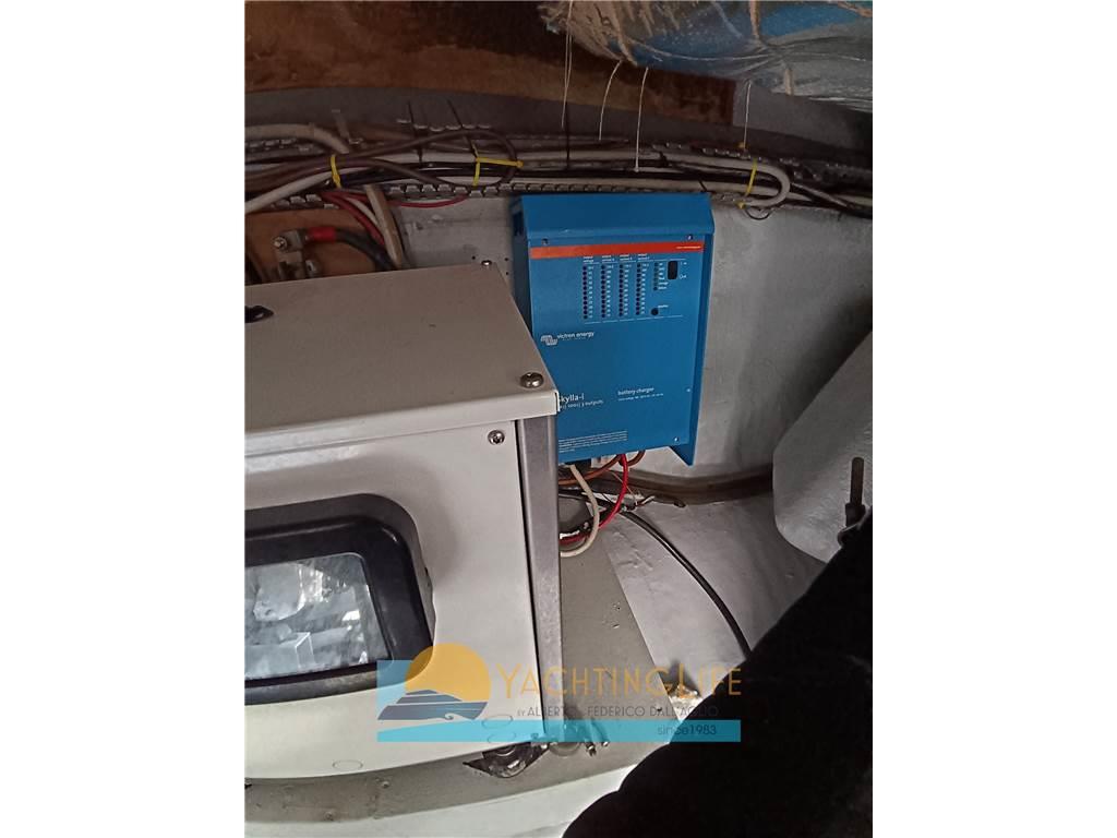 Altoparlanti, Aria condizionata (nuova), Boiler, Congelatore, Cucina, Cuscineria di poppa, Cuscineria di prua, Cuscineria fly, Forno, Frigorifero interno (grande nuovo), Giubbetti di salvataggio, Impianto TV, Pavimento interno in legno, Piastra in vetroceramica, Prese interne 12v, Prese interne 220v, Riscaldamento, Stereo, Telo copriconsolle, 2 WC marino elettrico, Zattera di salvataggio