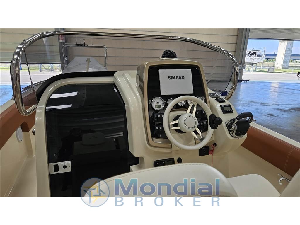 Angolo barra, Bussola, Comando motori elettronico, Ecoscandaglio, Log, Luci di navigazione, Plotter con antenna GPS, Quadro comandi, Radio VHF, Sedile Copilota.