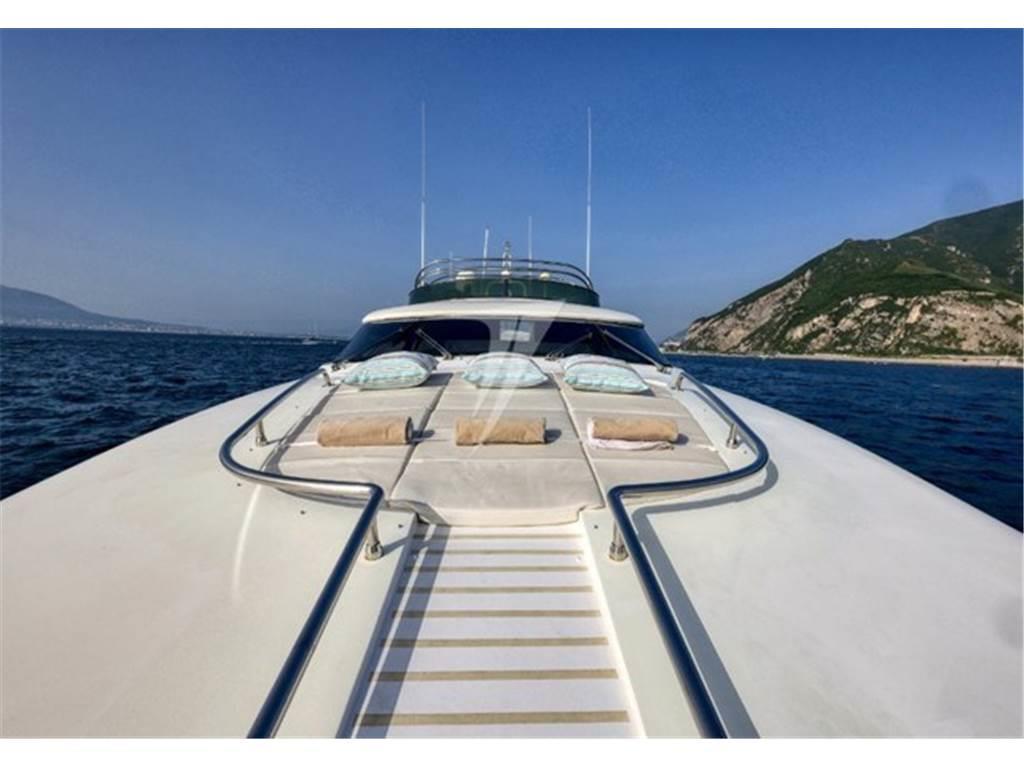 Ancora, Camminamenti laterali in teak, Cavo corrente di banchina, Elica di prua - bow thruster, Gruette per tender, Passerella (idraulica), Ponte in teak, Pozzetto Teak, Tender (Williams 385).