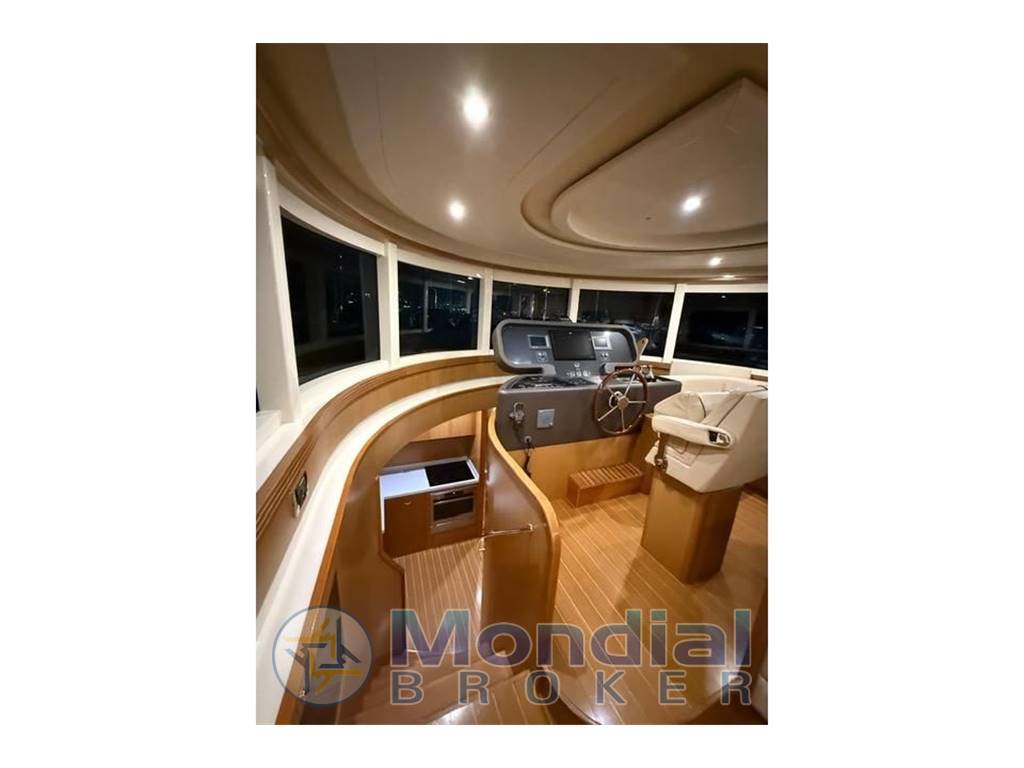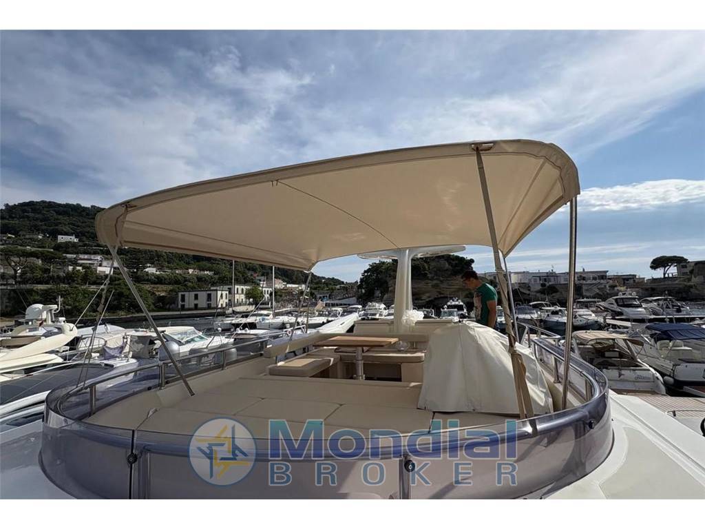 Bimini nel flybridge, zona bar con due frigoriferi, lavello e grill. Tavolo con sedute e zona prendisole flybridge, ampio divano a L flybridge. Tavolo da pranzo a poppa sul ponte principale, divano e zona salotto a poppa, prendisole con sedute a prua, dinette con finestre apribili, zona salotto a C, cucina semi-aperta super accessoriata.