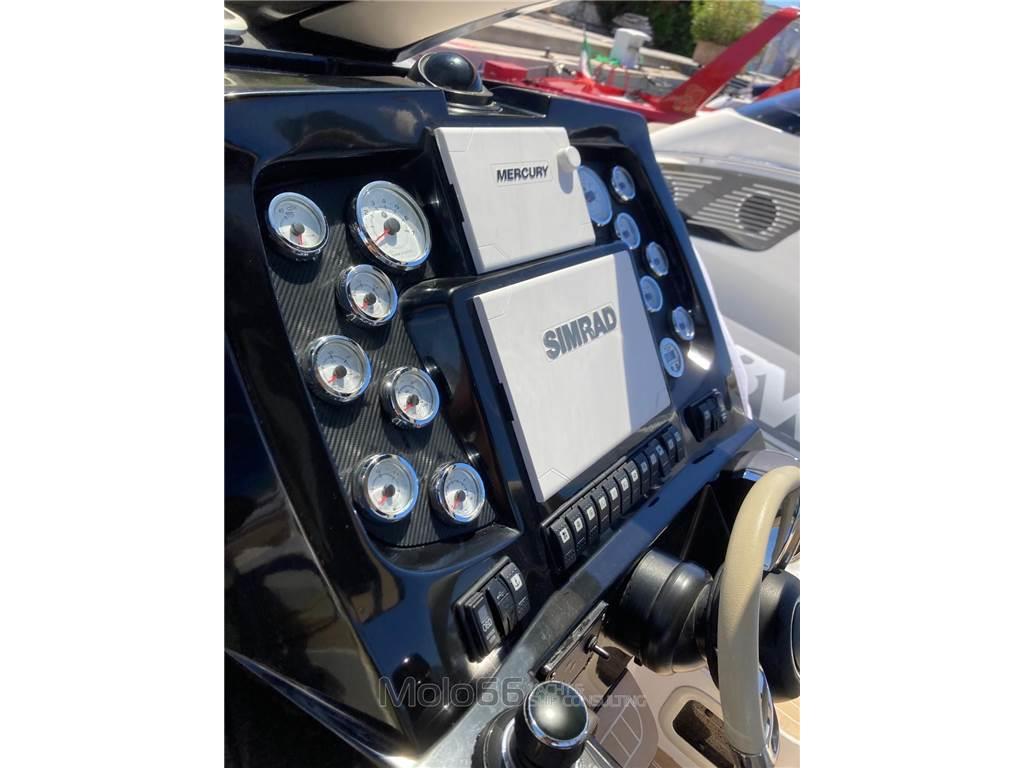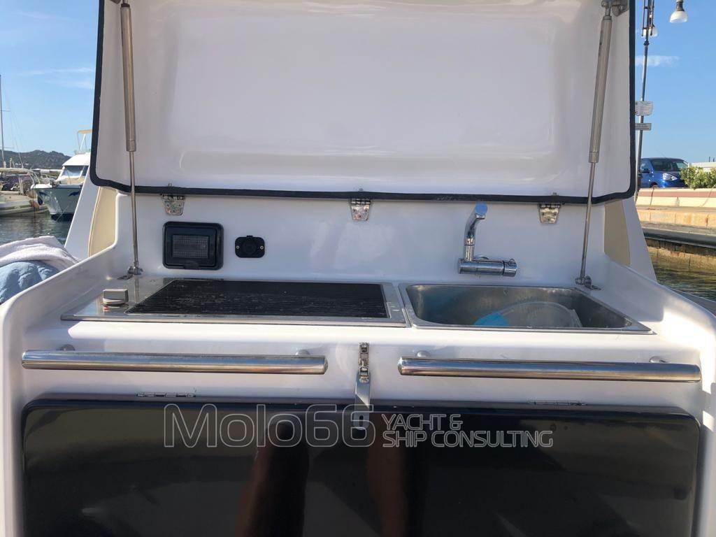 Allarme motore, Allarme sentina, Ancora, Autoclave, Batterie (4), Bussola, Caricabatterie (automatico), Display, Doccia esterna, Ecoscandaglio, GPS, Impianto antincendio, Joystick, Luci di cortesia, Passerella, Pilota automatico, Pompa di sentina automatica, Pompa di sentina elettrica, Pompa di sentina manuale, Presa 220V banchina, Radio VHF, Salpa Ancore Elettrico, Scaletta da bagno, Tromba