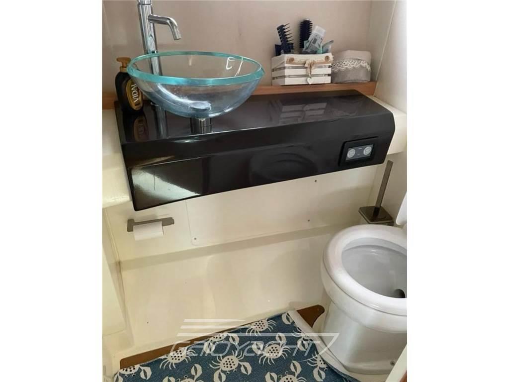 Ancora, Antenna radar, Apertura Vano Motore Elettrica, Autoclave, 5 Batterie (2 batterie servizi, 2 batterie motori, 1 batteria elica di prua), Caricabatterie, Comando motori elettronico, Computer di bordo, Contametri catena, Display (Raymarine serie E120), Doccia esterna, Elica di prua - bow thruster, Faro orientabile, Garage per tender, Hard top (Elettrico), Impianto antincendio (Sala motori), Joystick, Lavandino nel Pozzetto, Luci di cortesia, Luci subacquee, Passerella (Telescopica), Pilota automatico, Porta ingresso, Pozzetto Teak, Presa 220V banchina, Presa acqua banchina, Radar, Radio VHF, Salpa Ancore Elettrico, Scaletta da bagno, Sedile Copilota (Postazione biposto), Selle per Tender, Tavolo pozzetto, Tavolo Salone Abbattibile, Tender (Motore Yamaha hp15)