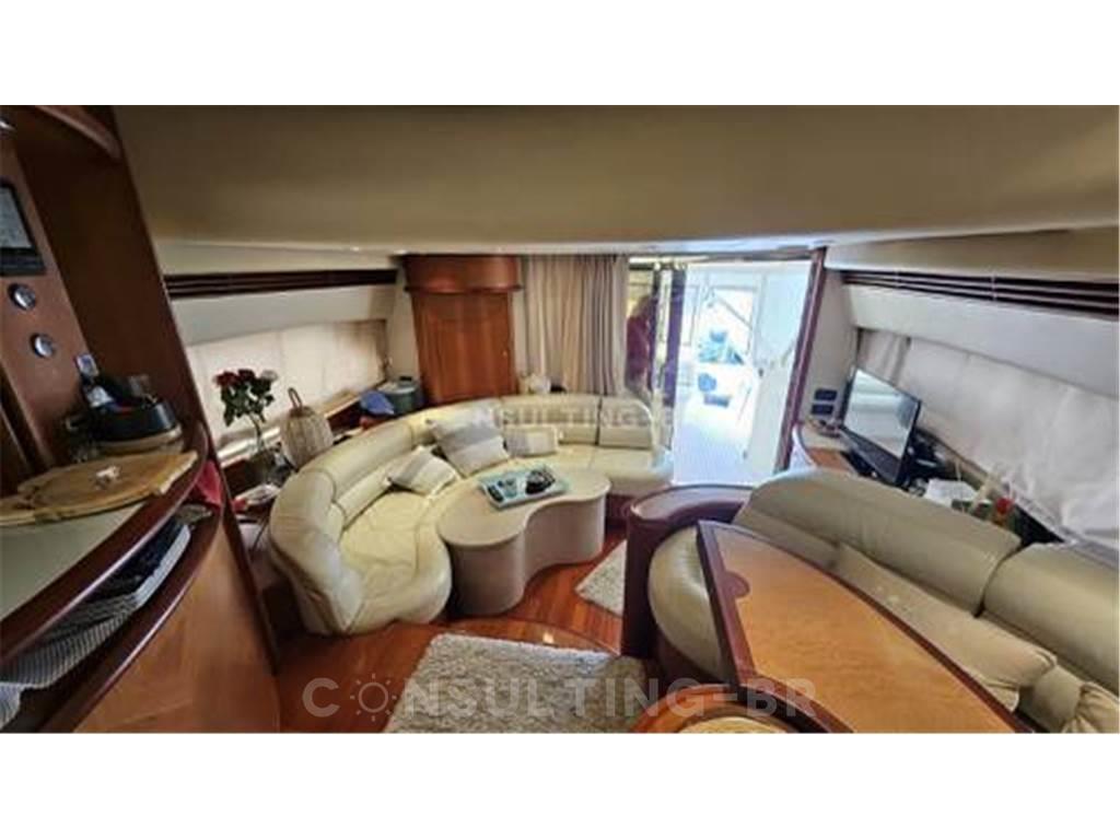 All'interno vi attendono un ampio salone, una comoda cucina e una disposizione degli spazi curata nei minimi dettagli, con cabina armatoriale, cabina di prua e cabina ospiti Il flybridge offre ampio spazio per rilassarsi e godersi il tempo libero, con angolo bar e barbecue: l'ideale per trascorrere momenti in compagnia a bordo