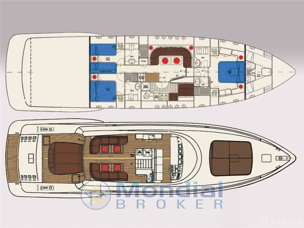 La cabina armatoriale offre il massimo comfort grazie a spazi eleganti e ben organizzati.