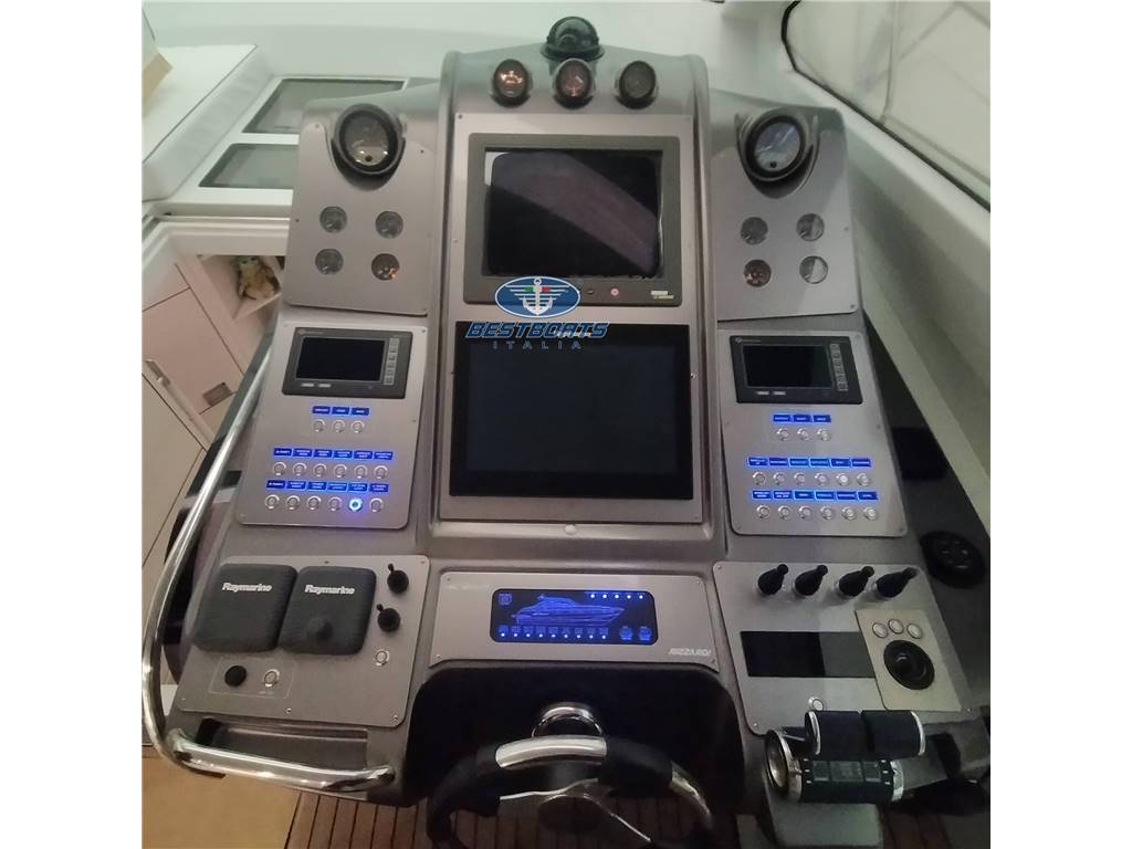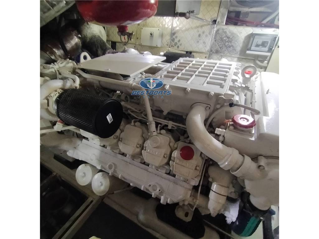 Allarme motore, Allarme sentina, Autoclave, Doccia esterna, Flap idraulici, Hard top, Impianto antincendio, Indicatori Flaps, Luci di cortesia, Luci subacquee, Passerella (idraulica), Piattaforma, Pompa di sentina automatica, Pozzetto Teak, Presa 220V banchina, Salpa Ancore Elettrico, Scaletta da bagno, Tavolo pozzetto, Tender (e motore), Tromba, Winch tonneggio di poppa, BBQ/ Grill, Boiler, Dissalatore, Impianto acque nere, Prese interne 12v, Prese interne 220v, 3 WC marino elettrico.