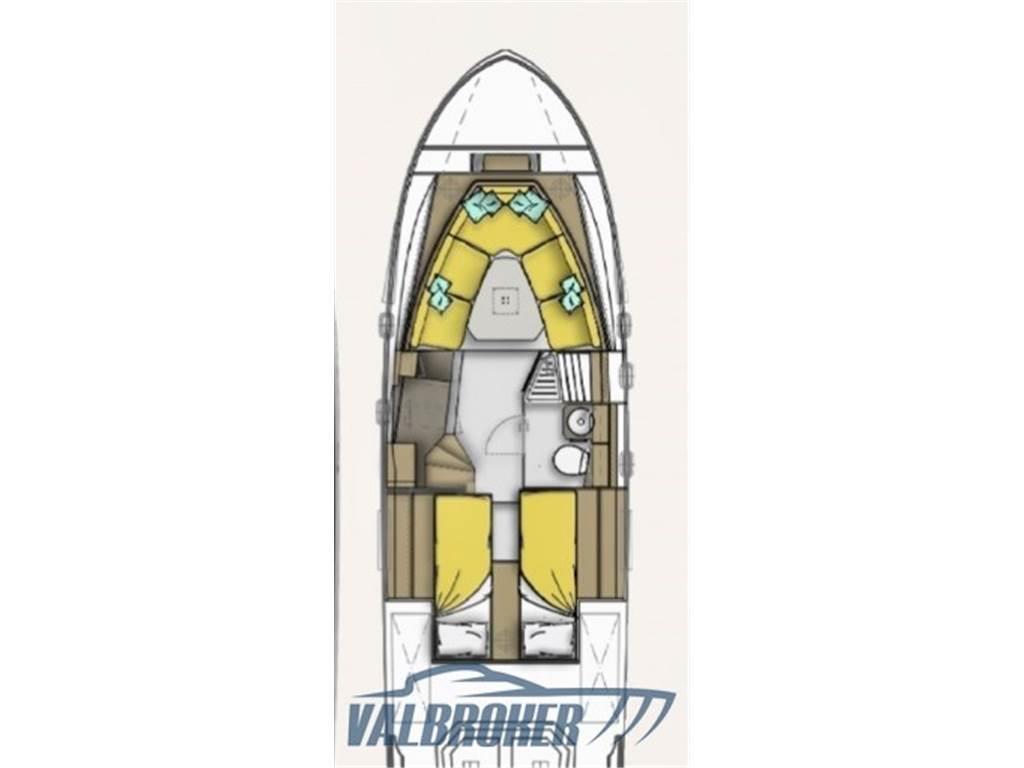 NATANTE NON TARGATO. FULL OPTIONAL: Joystick di manovra Yamaha, elica di prua, aria condizionata caldo/freddo 7000 BTU, autopilota, prendisole di poppa XL con guide scorrevoli e schienale ribaltabile, cucina esterna, T-TOP nero lucido.Seadeck grigio con fughe nere in pozzetto e camminamenti laterali. Non scotta e non ha bisogno di manutenzione.