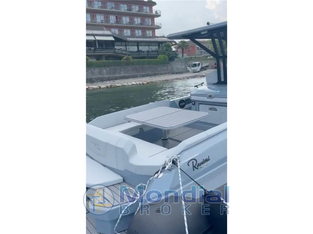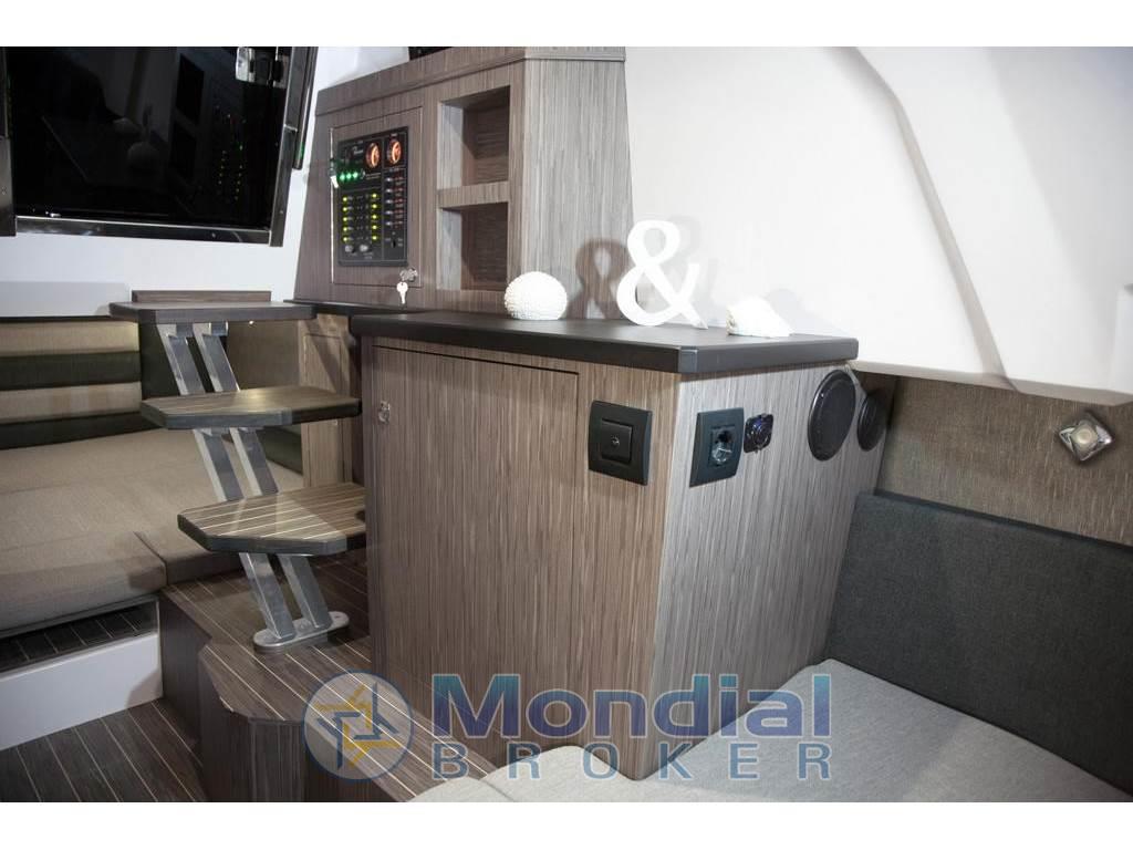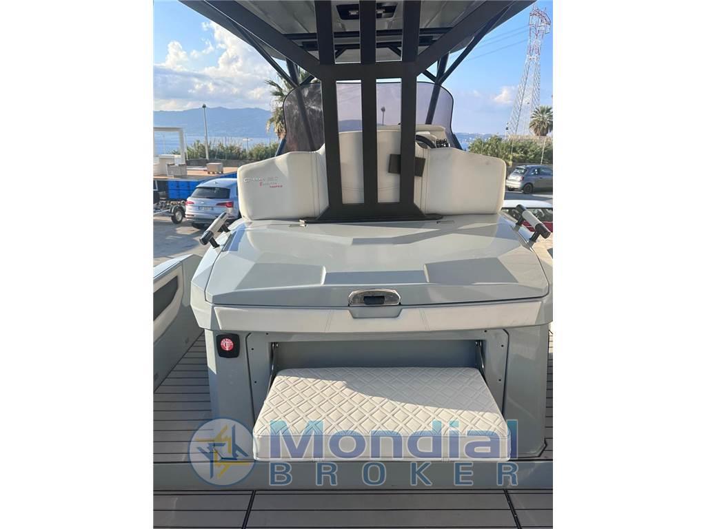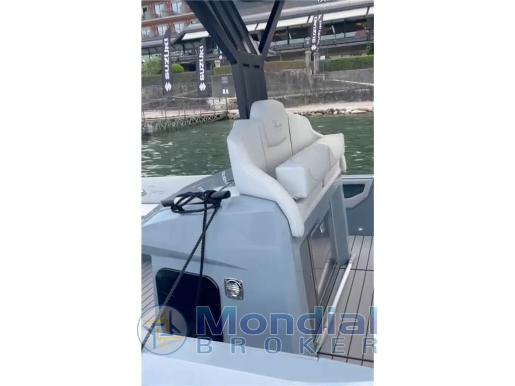 Joystick di manovra - elica di prua - mobile bar con lavello e piano cottura elettrico - frigo esterno - T-Top - verricello salpa ancora - ancora incassata nel musone di prua - stereo hi-fi Clarion - tavolo pozzetto con divano a C trasformabile in prendisole - aria condizionata - presa elettrica di banchina.