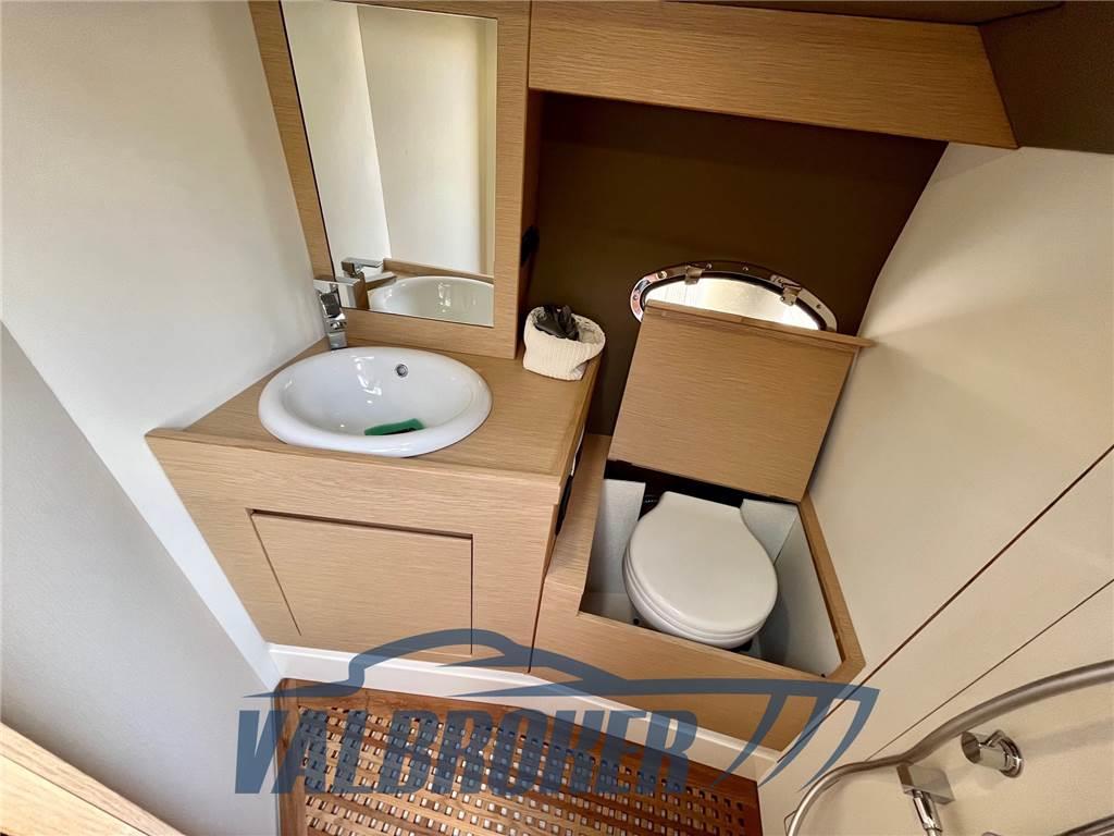 4 Altoparlanti, Aria condizionata (caldo/freddo 3.500 btu), BBQ/ Grill, Bimini (beige), Fornello (piastra a induzione a 2 fuochi nel pozzetto), Frigorifero esterno (Vitrifrigo), Impianto acque nere, Pavimento interno in legno, Serbatoio Acque Nere, Stereo (Fusion), Tendalino (a scomparsa), WC marino elettrico, luci a prua, tavolo interno in legno, mobili interni in teak chiaro