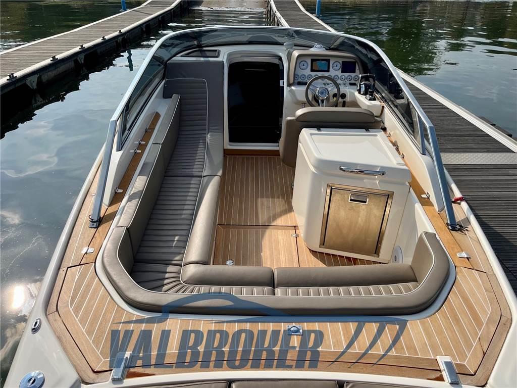 Elegante esemplare dell'altissima qualità costruttiva del cantiere Comitti del lago di Como sinonimo di linee senza tempo. Usato solo sul lago Maggiore! Allestito nella raffinata versione “Classic Teak” e motorizzato con 2 x 350 Hp MERCRUISER 6.2 V8 benzina con solo 60 ore di moto abbinato all'innovativo e sorprendente sistema joystick JPS-AXIUS che rende più facili le manovre. Tagliando motori e trasmissioni effettuato annualmente da officina autorizzata Mercury. Natante non targato con generatore con serbatoio dedicato diesel, aria condizionata caldo/freddo, serbatoio acque nere. Attualmente rimessato in secca al coperto. Marzo 2025: nuovo telo, smontaggio trasmissioni, controllo giunti, tagliando generatore, sostituzioni giranti. Ottobre 2025: invernamento accurato con pulizia serbatoi e benzina stabilizzata, immissione liquido antigelo nei sistemi.