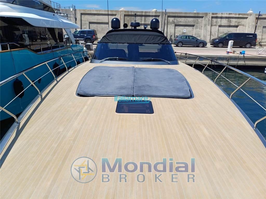 Accessori principali: Bussola, Aria condizionata, Dissalatore, Passerella idraulica, Piattaforma idraulica, Teak in pozzetto, Camminamenti laterali in teak, GPS, Radar, Pilota automatico, Antenna satellitare, TV