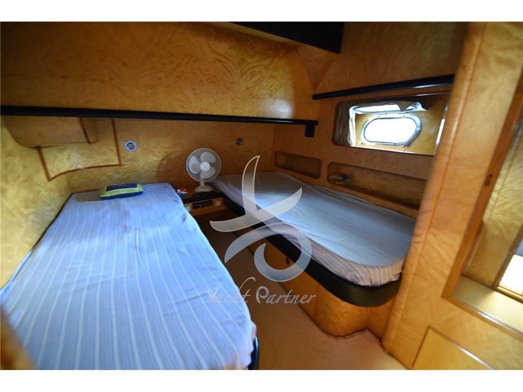 1 Doppia in piano, 1 Matrimoniale italiana, 1 Cabina equipaggio, 2 Toilette. Persone trasportabili: 8.