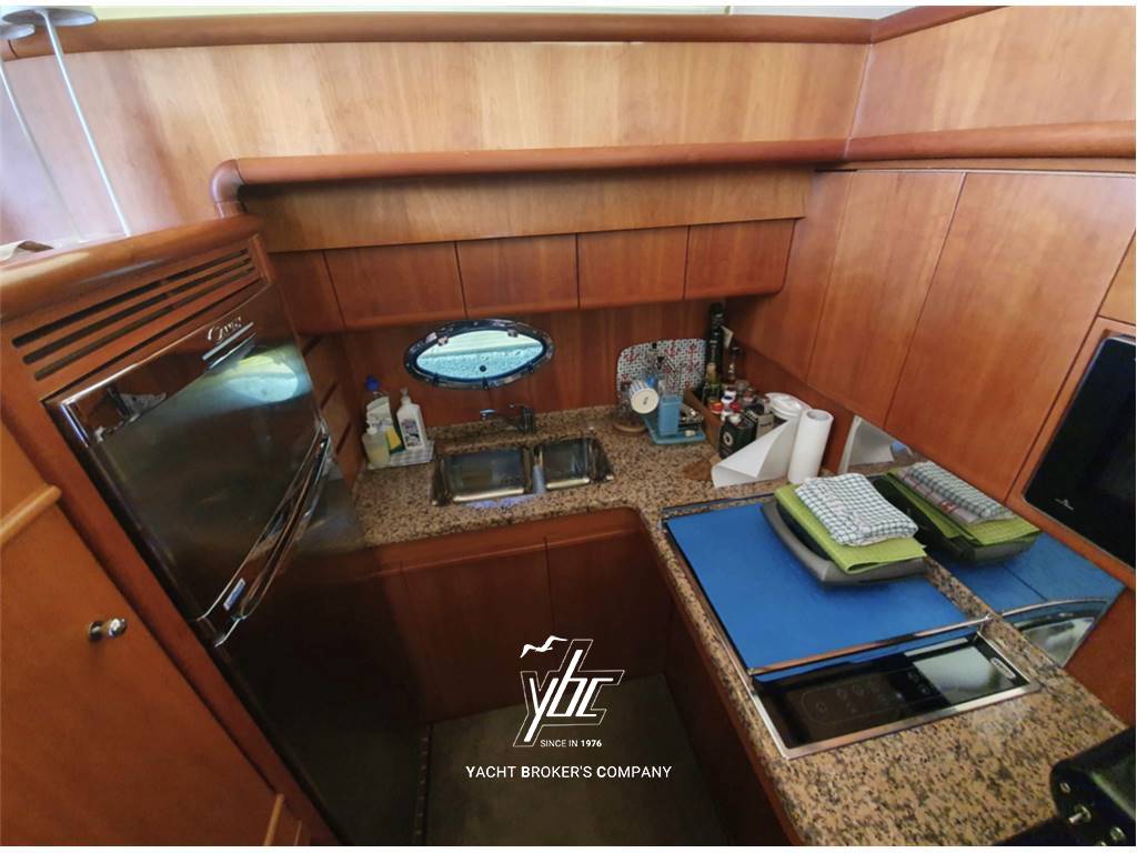 Ampia dinette semi circolare a dritta, comoda cucina sul lato sinistro completa di frigo, lavello, forno microonde, piano cottura in vetroceramica a 4 fuochi. Dalla cucina si accede ad un enorme vano utilizzato per stivaggio e cambusa.