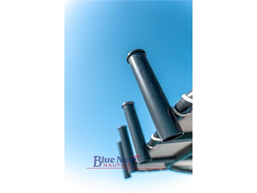 Dotazioni standart: pompa di sentina, luci di navigazione, timoneria meccanica, bitte ormeggio a scomparsa, scaletta di risalita, prendisole di prua, scafo bianco, tappezzeria, serbatoio carburante 105lt, 4 portacanne acciaio, serbatoio acqua dolce 45lt, impianto doccia, presa a mare, innesto rapido pompa, vasca del vivo, vasca del pescato.