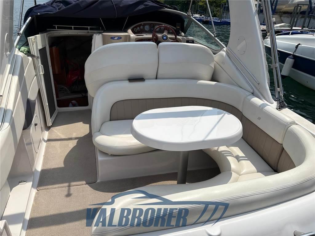 Natante non targato visibile sul Lago di Como. Motorizzato 1xVolvo Penta 5.7 GiE V8 iniezione con solo 287 ore di moto. Utilizzato solo in acqua dolce. Comodo passaggio centrale per raggiungere la prua.