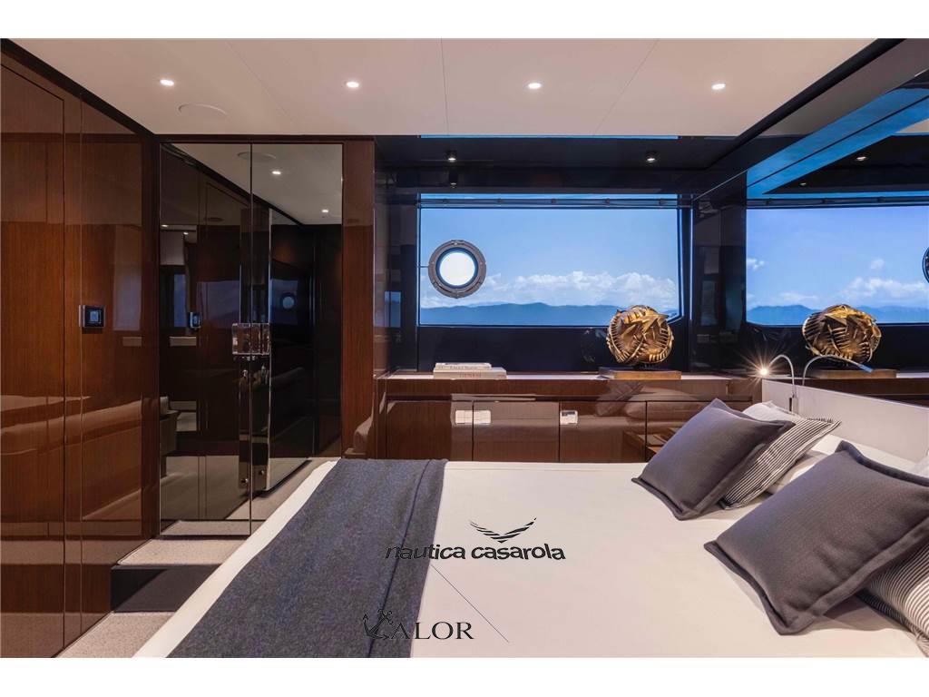 Camminamenti laterali in teak (con comento grigio), Elica di poppa - stern thruster, Luci di cortesia, 6 Luci subacquee (2 a poppa e 4 laterali), Pozzetto Teak (con comento grigio), Scaletta da bagno (idraulica), Stabilizzatori (Seakeeper NG9).