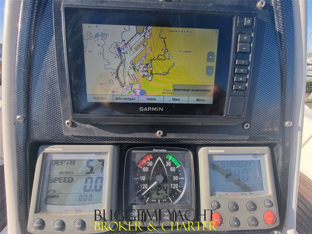 Plotter Garmin recente, Vhf Raymarine il cui altoparlante esterno è da rivedere, Eco e tridata raymarine, Autopilota , stazione vento raymarine sostituita, verricello elettrico,piano cottura 3 fuochi e frigo ampio con celletta, cuscinerie interne nuove, pompe wc elettrici nuovi.