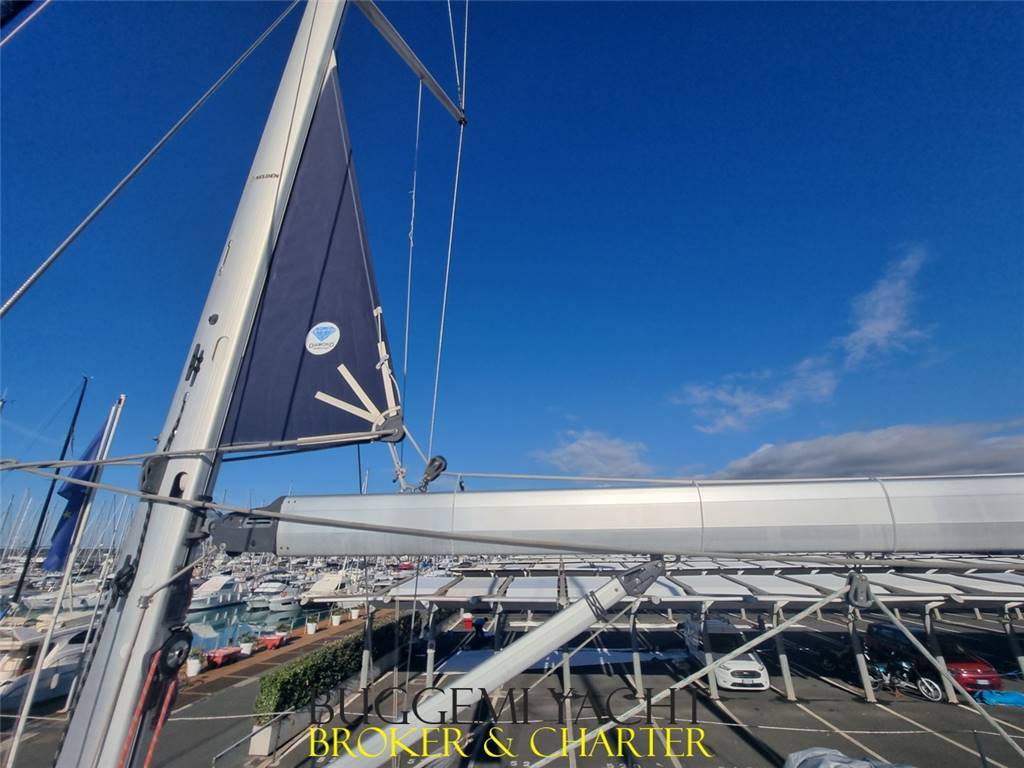Vele in ottimo stato, randa dacron del 2023 rollabile su albero e sistema Selden, vang rigido, Genoa rollabile in ottime condizioni banda uv recente, rollafiocco Facnor, paterazzo sdoppiato a patta d'oca, regolabile in tessile.