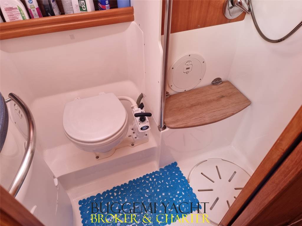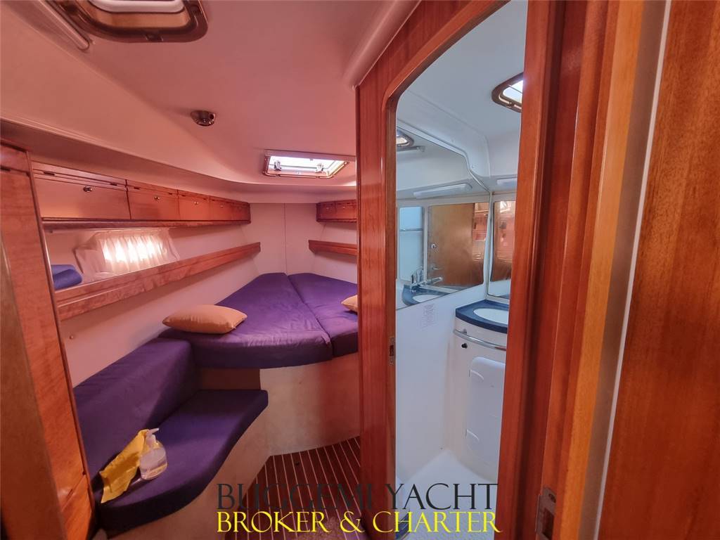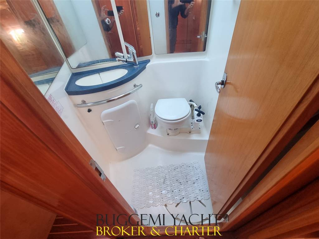 versione 3 cabine e 2 servizi di cui uno con ampio box doccia, entrambi i servizi sono dotati di wc elettrici con pompe nuove 2025, serbatoio acque nere, allestimenti interni ben tenuti, cuscinerie nuove 2023, finiture in legno in mogano chiaro.