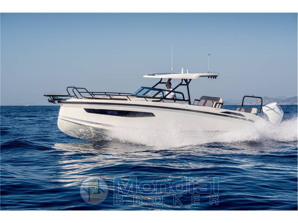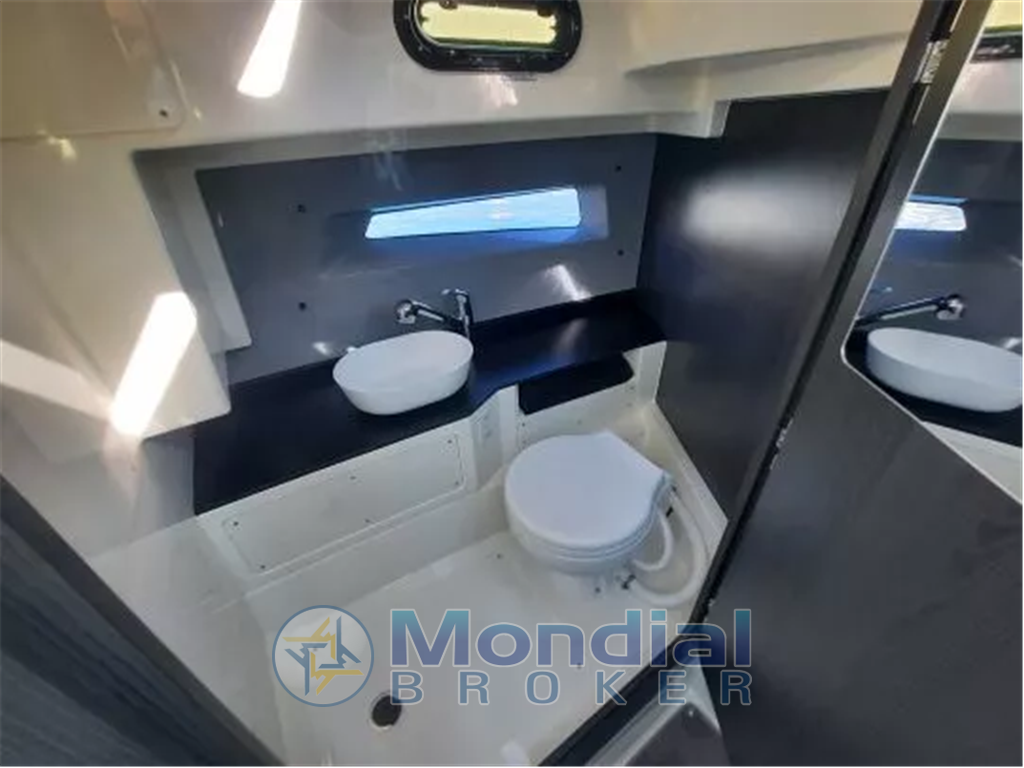 Hardtop grigio, scafo grigio Telegray, fondo scafo nero, striscia dorata, anello antifurto, arco di traino per sci nautico, bitte di ormeggio a scomparsa, delfiniera, rivestimento pavimento Gatorstep, T-top grigio, illuminazione subacquea, Mobile esterno con lavello, grill elettrico con inverter, Oscurante/zanzariera avvolgibile passa uomo prua, frigorifero cassetto, tappeto interno, TV con antenna, , Faro, Teli copertura sedili guida, mobile esterno lavello, cruscotto, sedile poppa e prendisole prua, Cappottina paraspruzzi e telo copertura, Prendisole pozzetto, Cartografia, Collaudo test e preconsegna.
