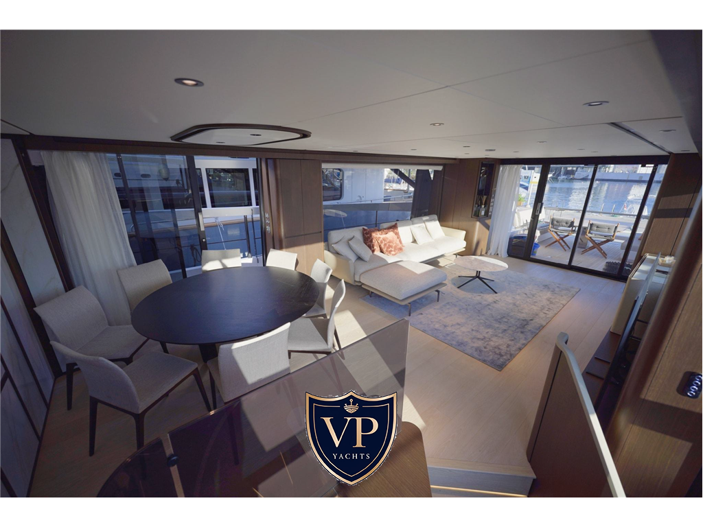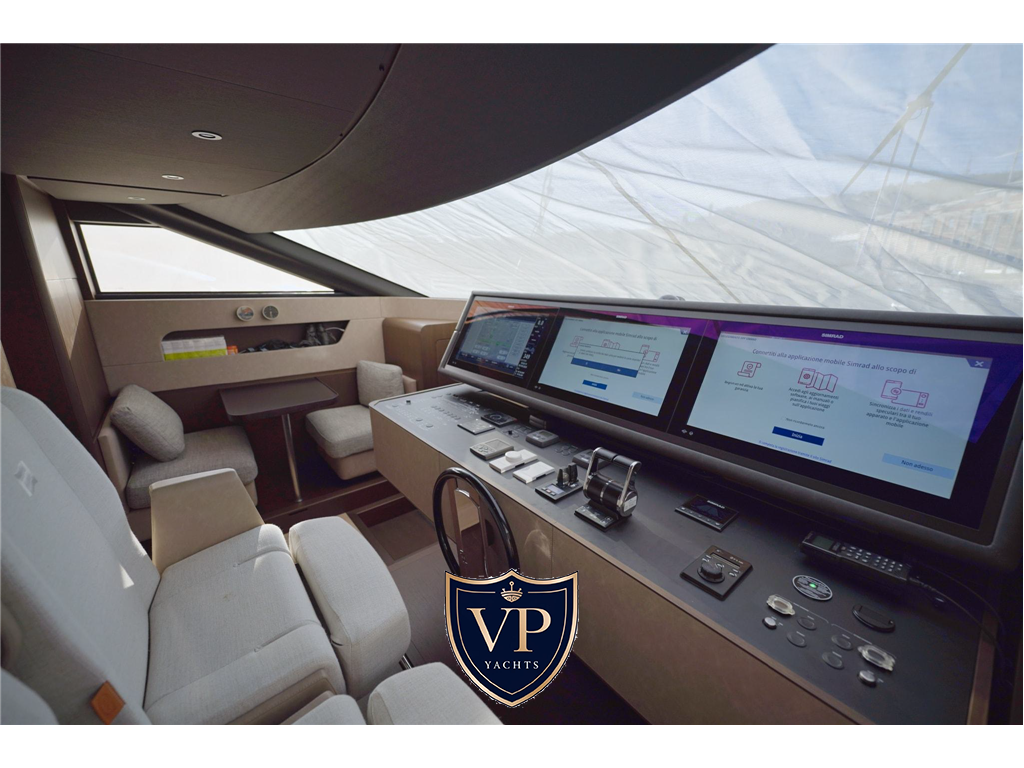 Accessori principali: Aria condizionata tropicale, Hard top, 2 Generatori 2x27 KW, Dissalatore 180 l/h, Luci subacquee, Sea Keeper (NG18), Ice maker, TV 75" in dinette, Porta elettrica dinette