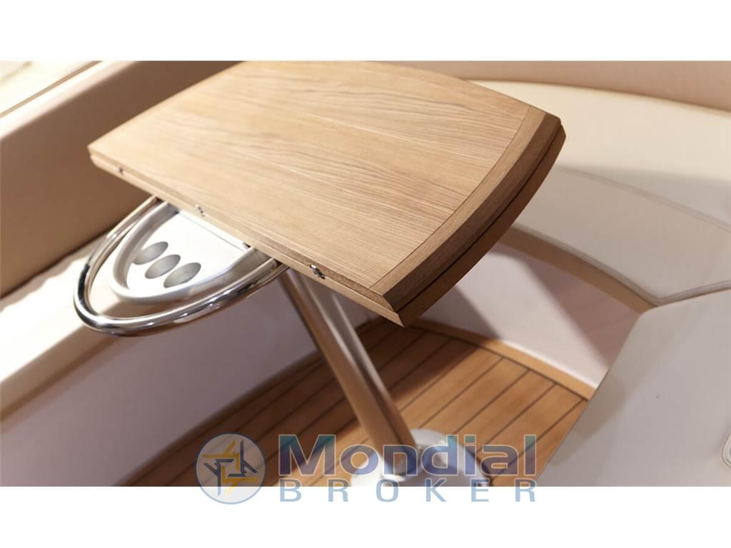Angolo barra, Bussola, Comando motori elettronico, Ecoscandaglio, GPS, Pilota automatico, Plotter con antenna GPS, Radio VHF, Sedile Copilota.