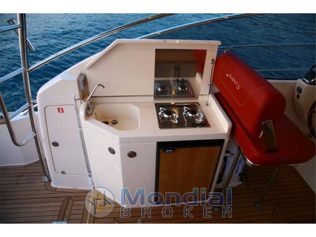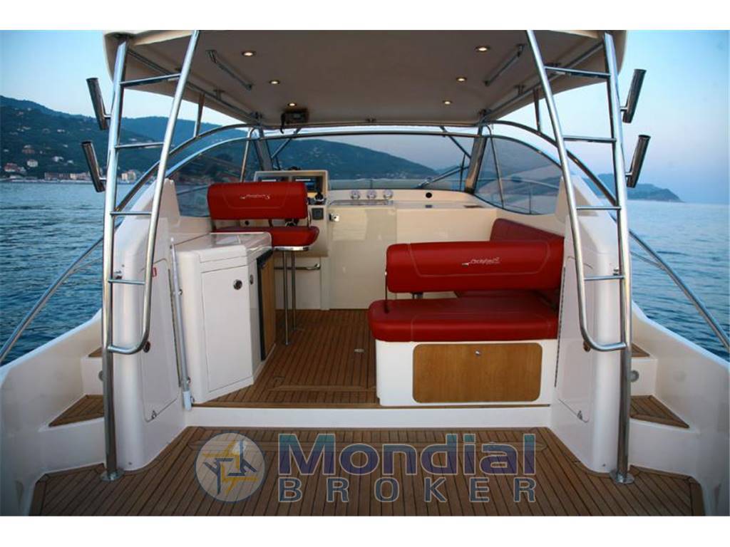 Plancetta poppa, pozzetto, gradini passavnti e top panca di poppa in teak massello - Pavimento dinette in teak - N. 4 portacanne inox su bordo pozzetto - n. 4 portacanne a riposo (n.2 per lato su scalette del top rigido) - Kit illuminazione plancetta di poppa - Faro elettrico su hard top - N. 2 prese salpabolentino nei gavoni pozzetto - Gavone di poppa diviso a metà (metà gavone e metà vasca vivo) - Catena 75 mt - Contacatena - Kit tagliacime - Luci sottomarine OCEANLED 110 LED