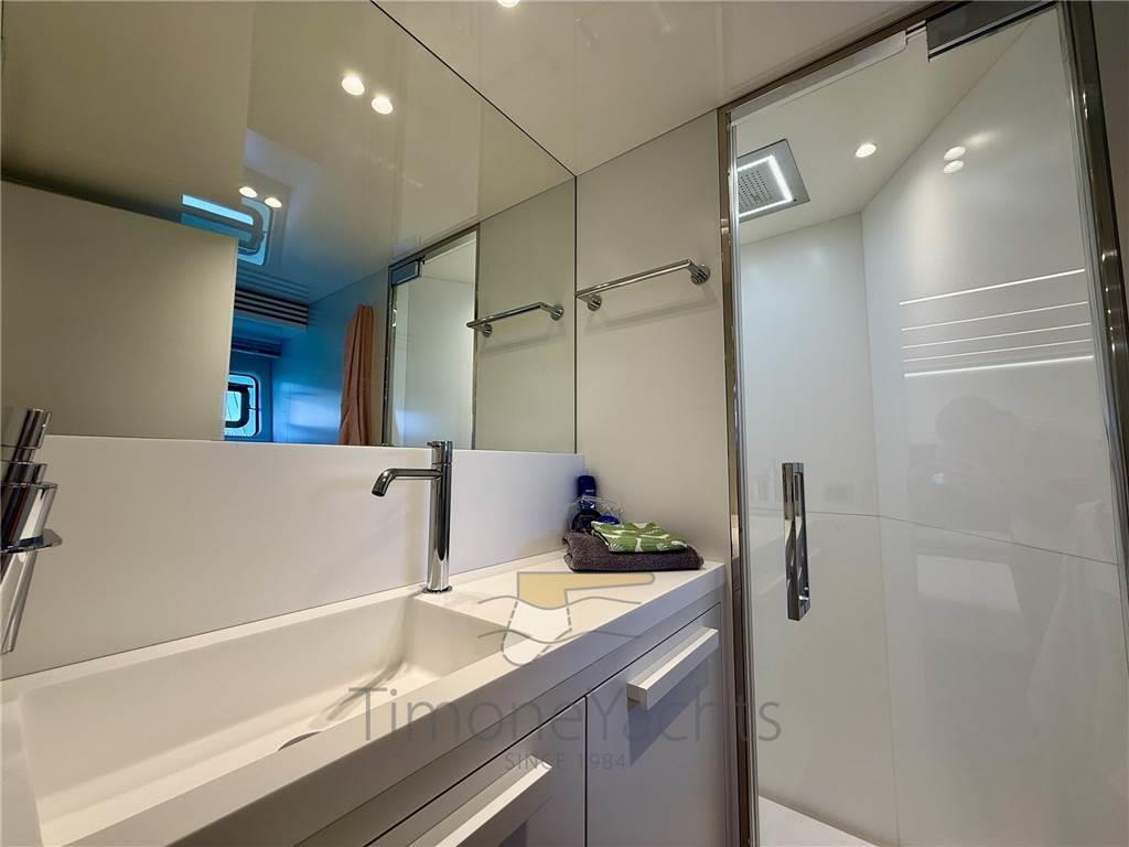 Aria condizionata, BBQ/ Grill, Clima reversibile, Pavimento interno in legno, Prese interne 12v, Prese interne 220v, Riscaldamento, Serbatoio Acque Nere, 5 WC marino elettrico (Uno per ogni cabina + Day toilet).