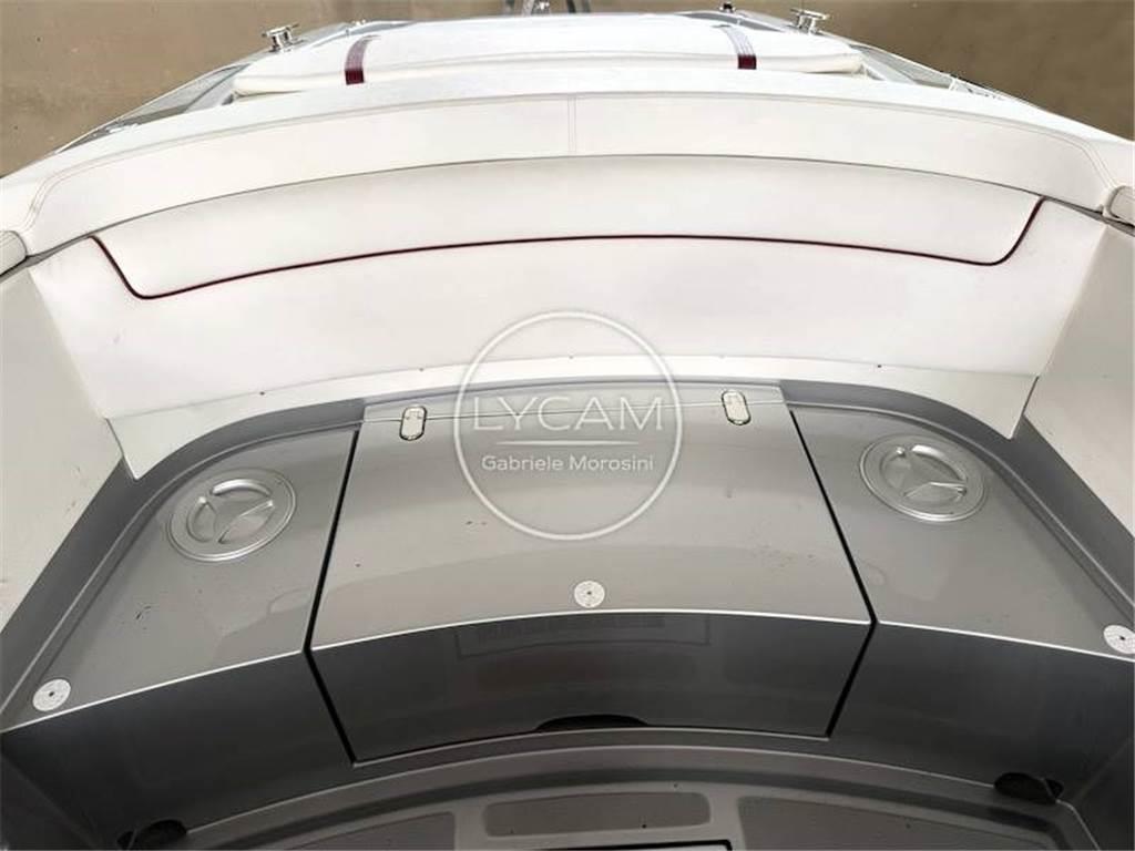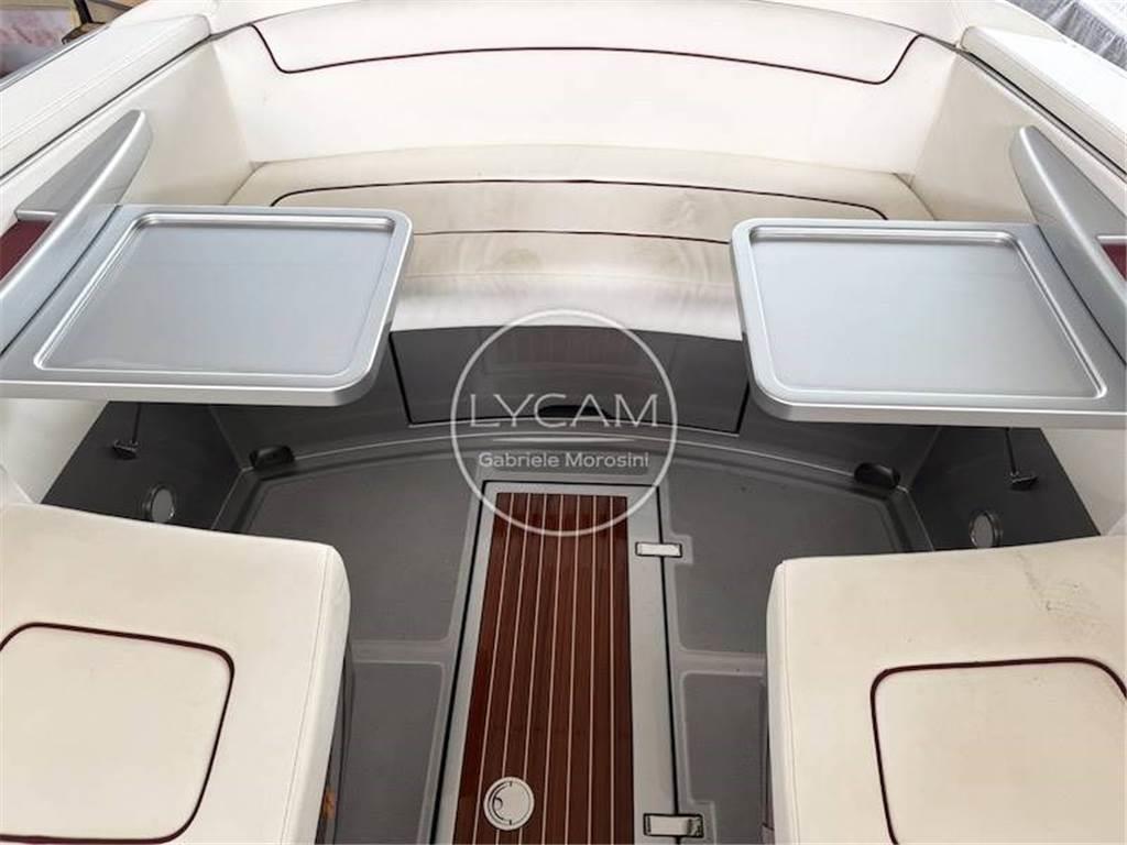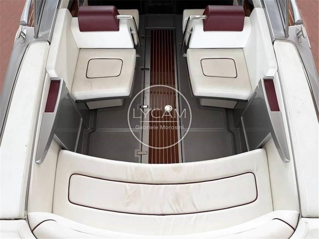 Luci di navigazione; Luce di fonda; Ancora acciaio inox; Tergicristalli; Sirena; Asta porta bandiera; Bitte in acciaio inox; Specchietto retrovisore; Gancio sci nautico; Plancetta di poppa in mogano; Scaletta bagno a scomparsa; Bimini elettro-idraulico a scomparsa; Cuscinerie prendisole poppa/pozzetto; Altoparlanti; Telo copertura barca; Frigo a cassetto (35l); 2 Batterie; Stacca batterie; Caricabatterie; Presa 220V; Parallelo; Pompa sentina elettrica; Autoclave; Elica di prua; Mezzomarinaio; Doccia pozzetto