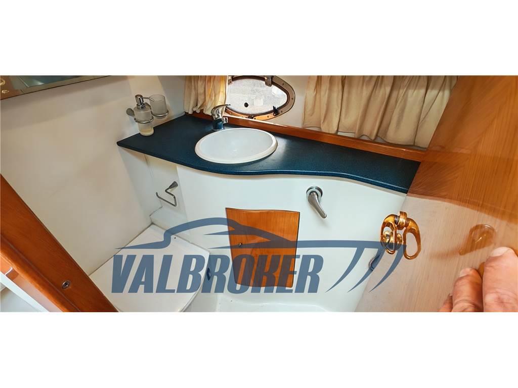 Open visibile sul Lago Maggiore con due cabine doppie e due bagni. Motorizzato 2x Volvo Penta D4. FULL OPTIONAL: Passerella idraulica, Generatore Mase, plancetta estesa, elica di prua Vetus, faro con comando a distanza, contametri catena Quick, pilota automatico Raymarine, pozzetto in teak, riscaldamento Webasto. Marzo 2026: trattamento preventivo anti-osmosi, rimozione vecchi strati antivegetativa, carena portata a zero con sabbiatura, ciclo completo Stoppani-Lechler, n. 8 mani resina epossidica e applicazione antivegetativa su scafo e trasmissioni.