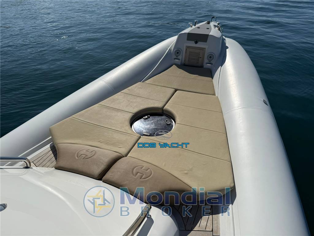 A prua, l'ampio prendisole è il posto perfetto per vivere il mare in pieno relax. La consolle di guida è ampia e permette al pilota e co-pilota di godersi la traversata al massimo delle prestazioni di questo gommone.